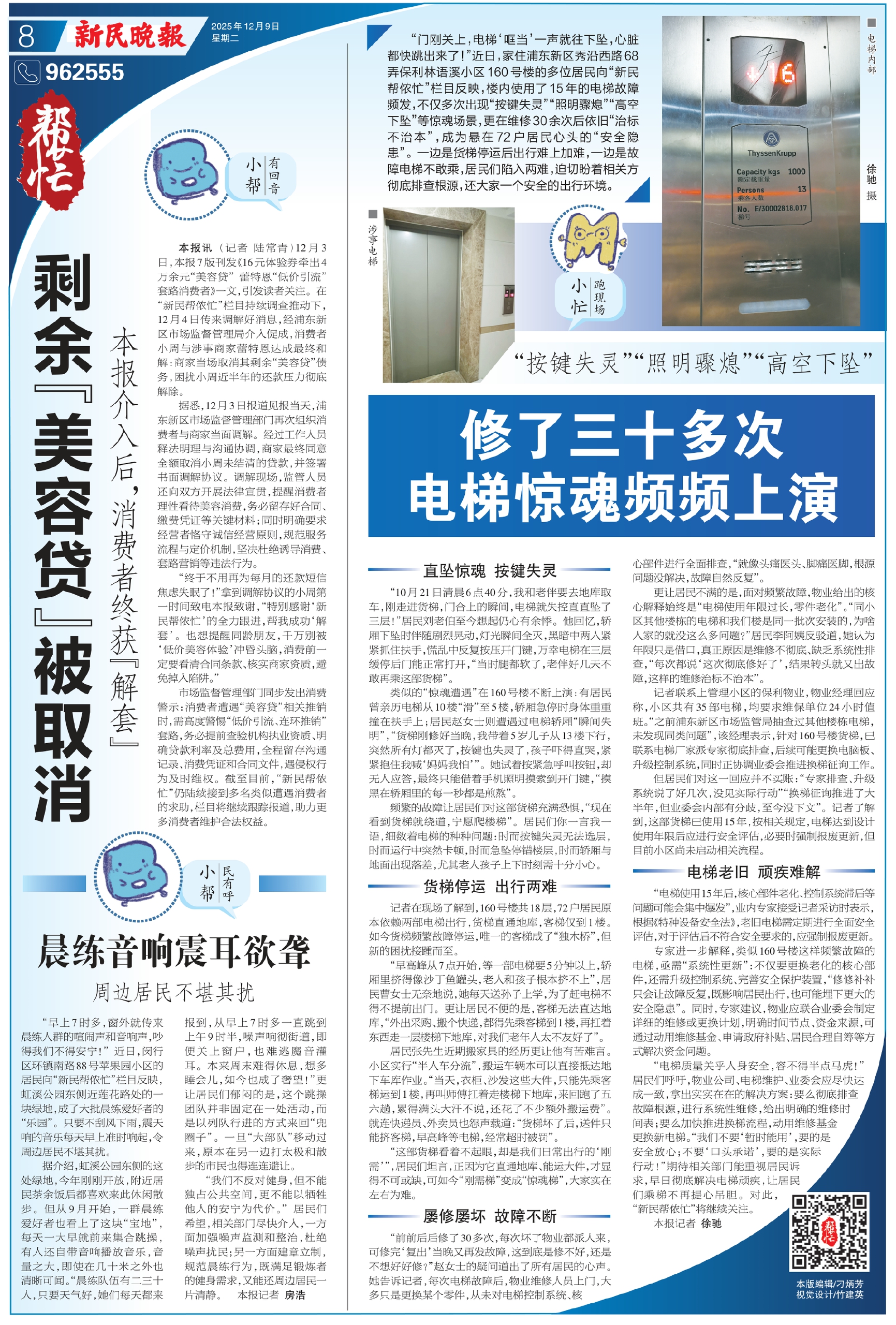 本报讯(记者 陆常青)12月3日,本报7版刊发《16元体验券牵出4万余元“美容贷”蕾特恩“低价引流”套路消费者》一文,引发读者关注。在“新民帮侬忙”栏目持续调查推动下,12月4日传来调解好消息,经浦东新区市场监督管理局介入促成,消费者小周与涉事商家蕾特恩达成最终和解:商家当场取消其剩余“美容贷”债务,困扰小周近半年的还款压力彻底解除。