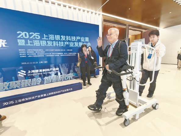 “我们的消费级AI运动外骨骼机器人单价仅万元出头,目前每月在上海销售二三十台,购买者50岁至80岁都有,有一位患有帕金森症的老人购买穿戴后,每天都可以下床散步了,生活半径大大拓展”“UIOT是国家级专精特新‘小巨人’企业,智慧家居系统加上适老化元素后,可以提升老人的生活质量,例如,乘坐轮椅的老人回家时,门会自动‘刷脸’打开,室内灯光会自动打开”……在今天上午举行的2025上海银发科技产业周暨发展大会上,近30家国内和上海市领先的企业亮相产业展示会,展台人员面向观众积极介绍各自的银发科技新产品,博音听力技术公司还预告明天发布新款AI助听器。在这个舞台上,智能康复、AI智慧康养、脑机接口等各种新产品济济一堂,共同为银龄生活描述了一个充满科技感的明天。
