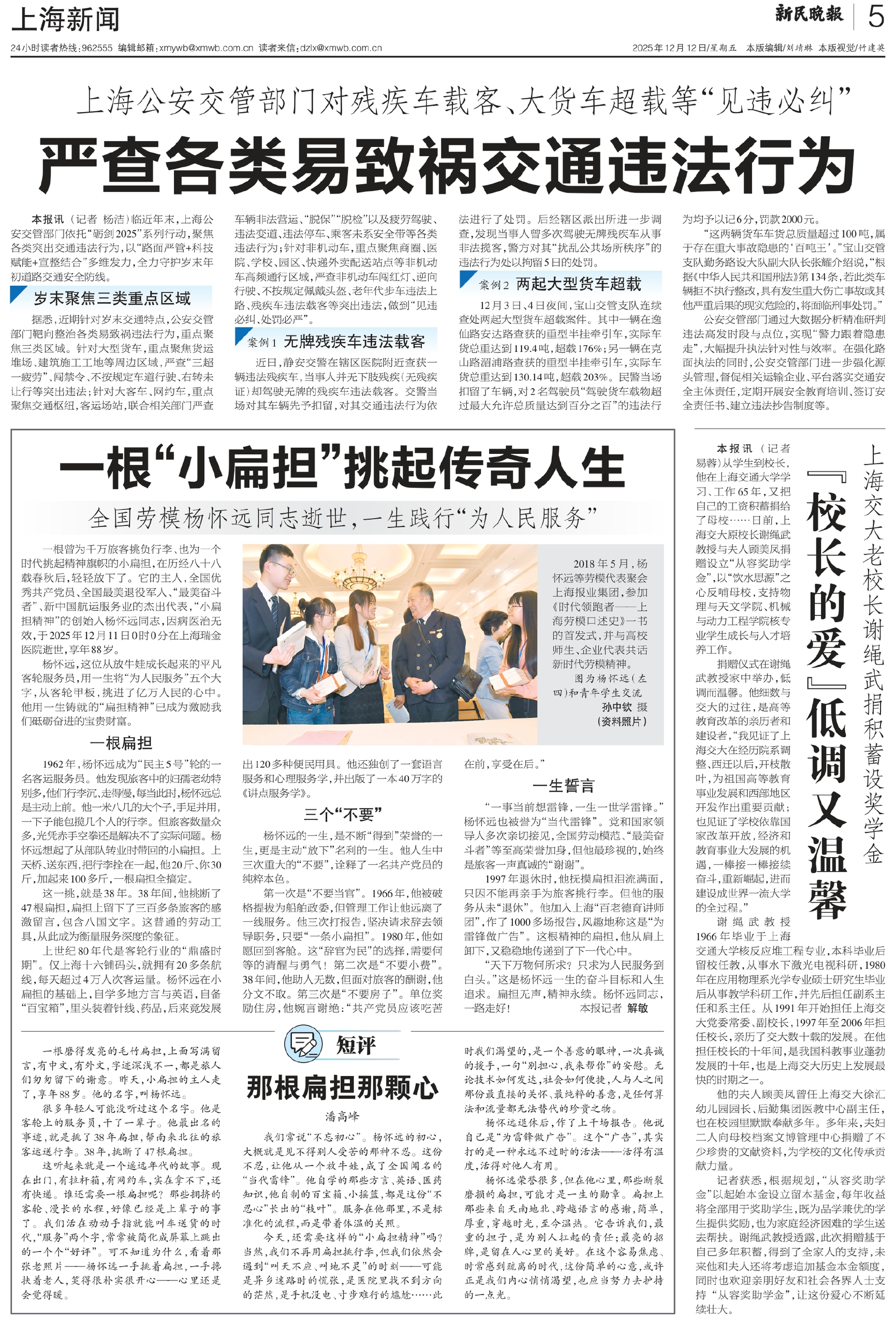 本报讯 (记者 杨洁)临近年末,上海公安交管部门依托“砺剑2025”系列行动,聚焦各类突出交通违法行为,以“路面严管+科技赋能+宣整结合”多维发力,全力守护岁末年初道路交通安全防线。