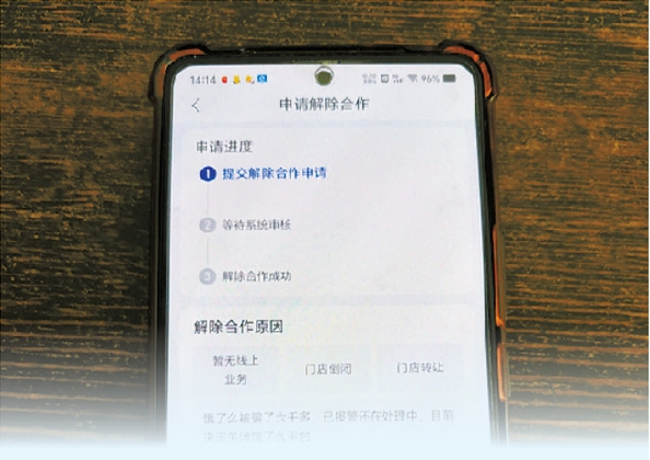 “扣完这笔推广费,卖一份10元的餐品,到手只剩5元,连买食材的钱都不够,何况还有人工、房租……真是倒贴钞票给平台打工。”张先生算了一笔账,按照这样的扣费标准,小餐饮店根本无利可图,更别提持续运营。为了追回这笔被扣除的“推广服务费”,他多次联系开通服务的业务经理,对方却始终推诿,找平台投诉也无人解决,报警后因属经济纠纷也难以处理。无奈之下,张先生只能向平台提交解除合作申请,关停了店铺的线上运营。