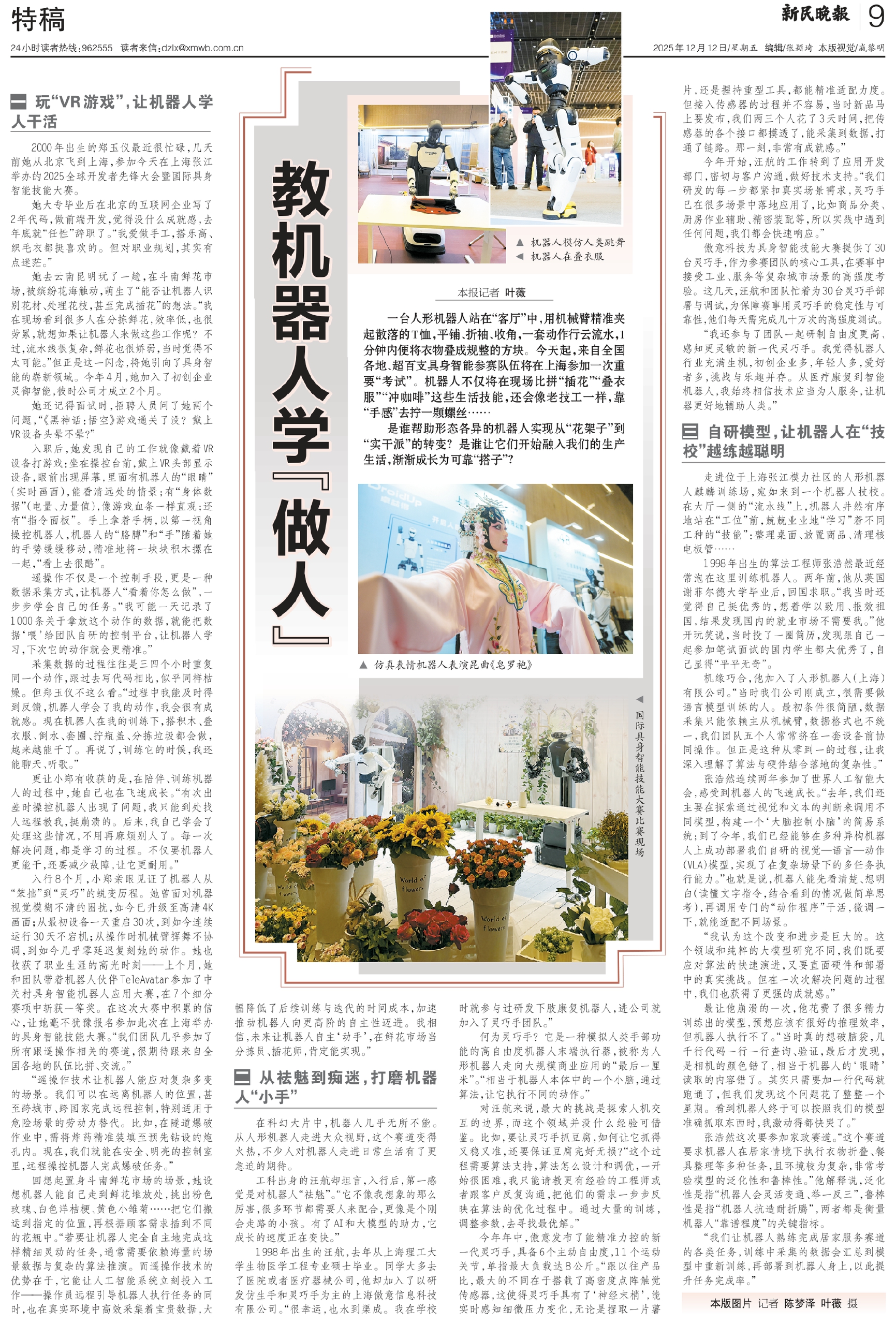 更让小郑有收获的是,在陪伴、训练机器人的过程中,她自己也在飞速成长。“有次出差时操控机器人出现了问题,我只能到处找人远程教我,挺崩溃的。后来,我自己学会了处理这些情况,不用再麻烦别人了。每一次解决问题,都是学习的过程。不仅要机器人更能干,还要减少故障,让它更耐用。”