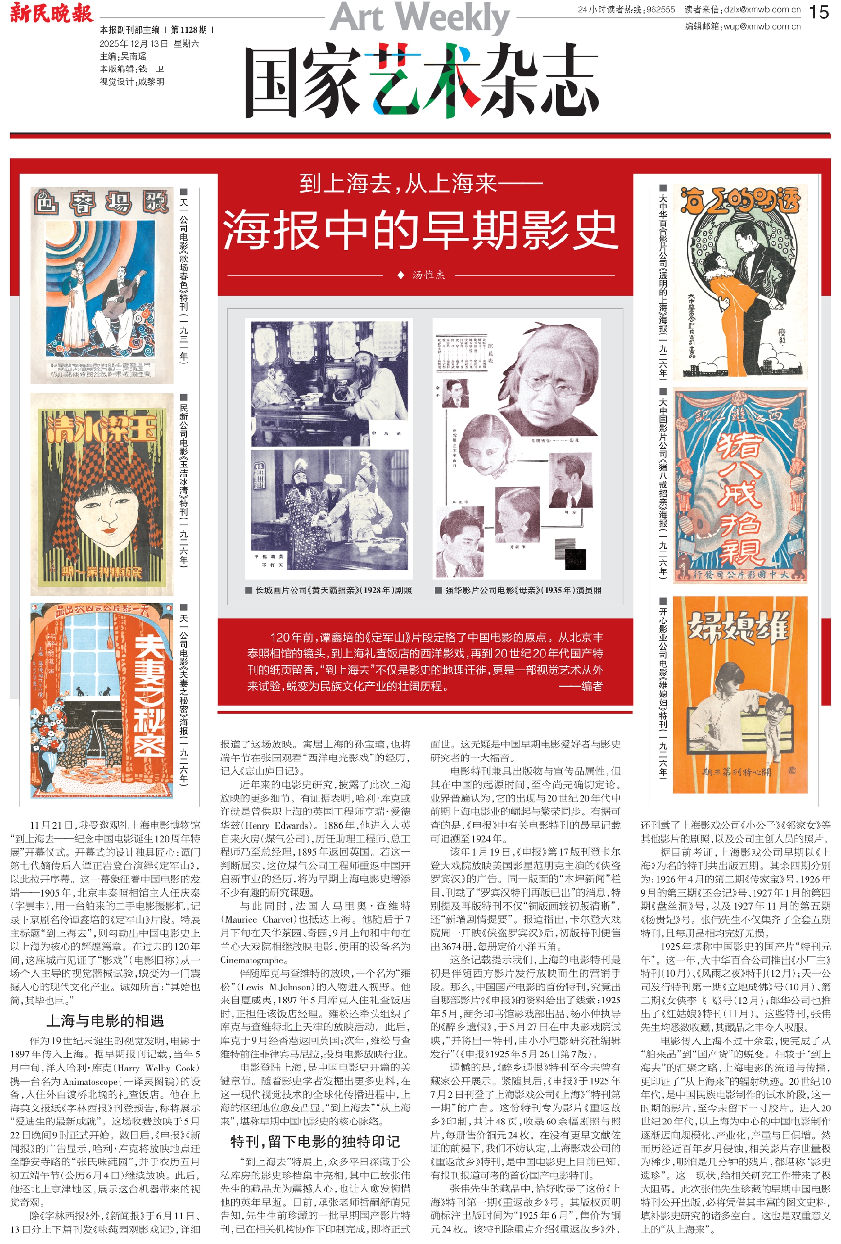 120年前,谭鑫培的《定军山》片段定格了中国电影的原点。从北京丰泰照相馆的镜头,到上海礼查饭店的西洋影戏,再到20世纪20年代国产特刊的纸页留香,“到上海去”不仅是影史的地理迁徙,更是一部视觉艺术从外来试验,蜕变为民族文化产业的壮阔历程。 ——编者