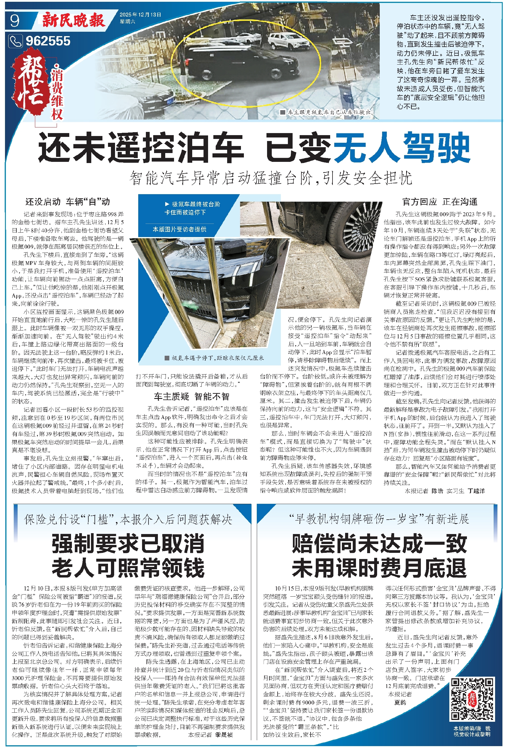 那么,智能汽车又如何能给予消费者更靠谱的“安全保障”呢?“新民帮侬忙”对此将持续关注。