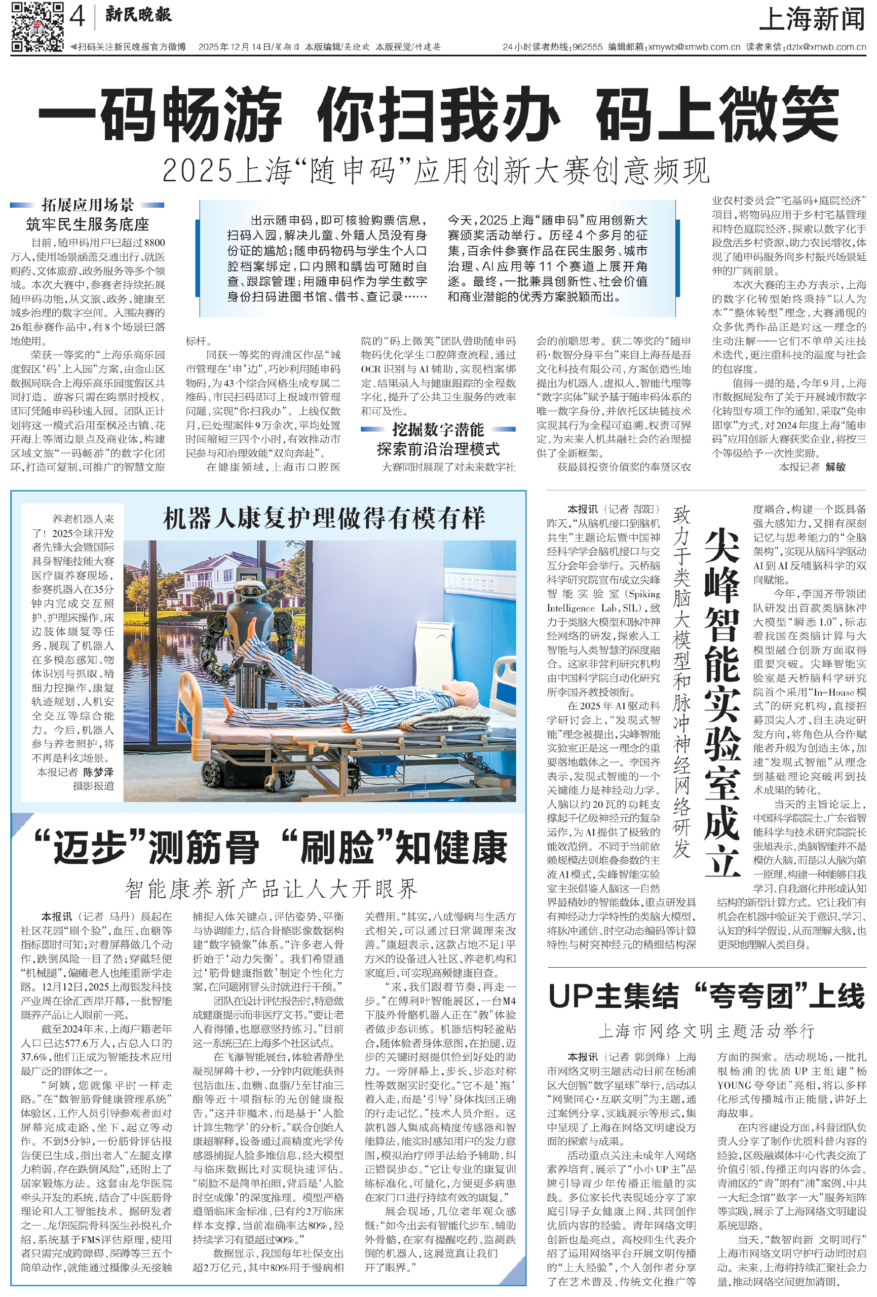 出示随申码,即可核验购票信息,扫码入园,解决儿童、外籍人员没有身份证的尴尬;随申码物码与学生个人口腔档案绑定,口内照和龋齿可随时自查、跟踪管理;用随申码作为学生数字身份扫码进图书馆、借书、查记录……今天,2025上海“随申码”应用创新大赛颁奖活动举行。历经4个多月的征集,百余件参赛作品在民生服务、城市治理、AI应用等11个赛道上展开角逐。最终,一批兼具创新性、社会价值和商业潜能的优秀方案脱颖而出。