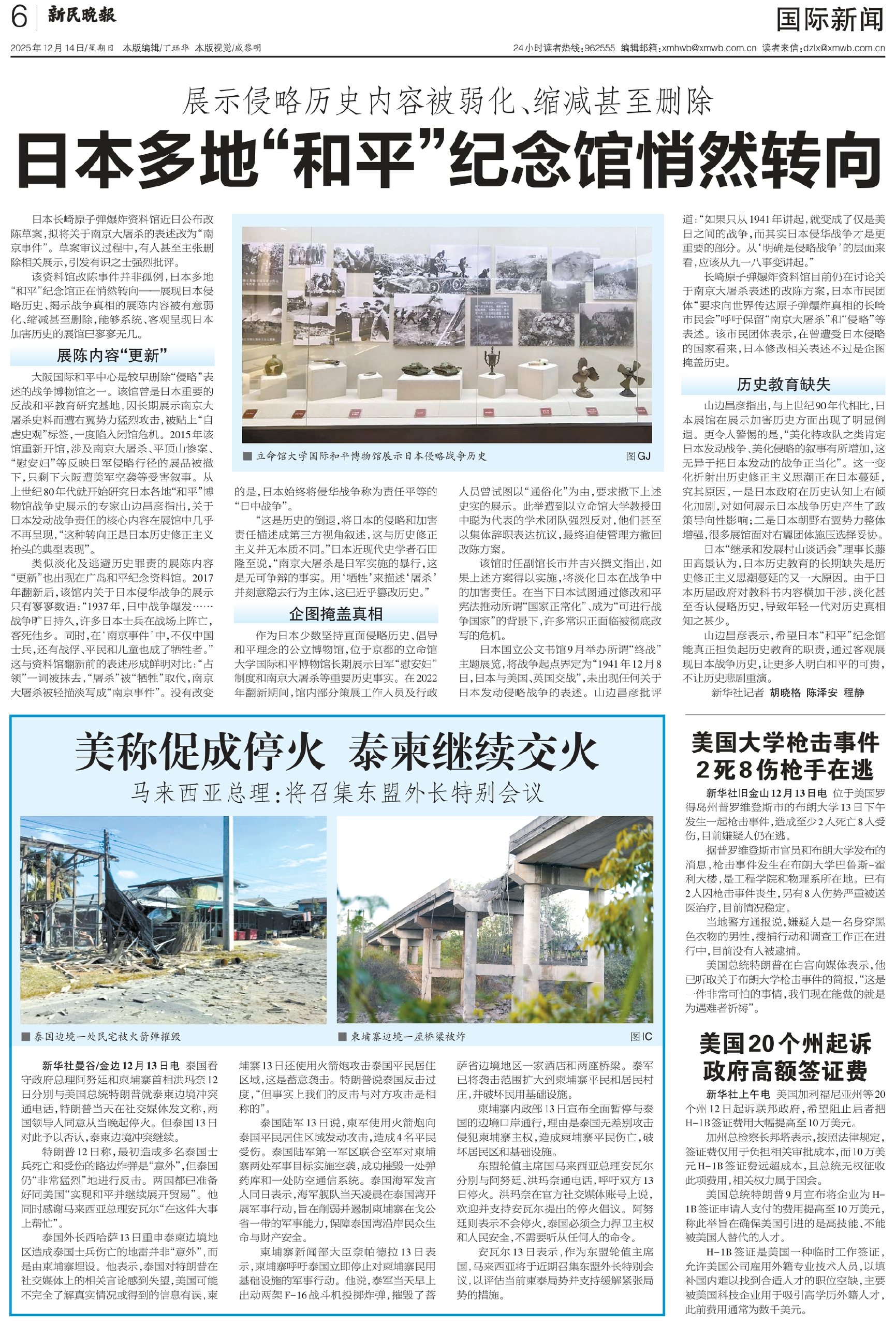 该资料馆改陈事件并非孤例,日本多地“和平”纪念馆正在悄然转向——展现日本侵略历史、揭示战争真相的展陈内容被有意弱化、缩减甚至删除,能够系统、客观呈现日本加害历史的展馆已寥寥无几。