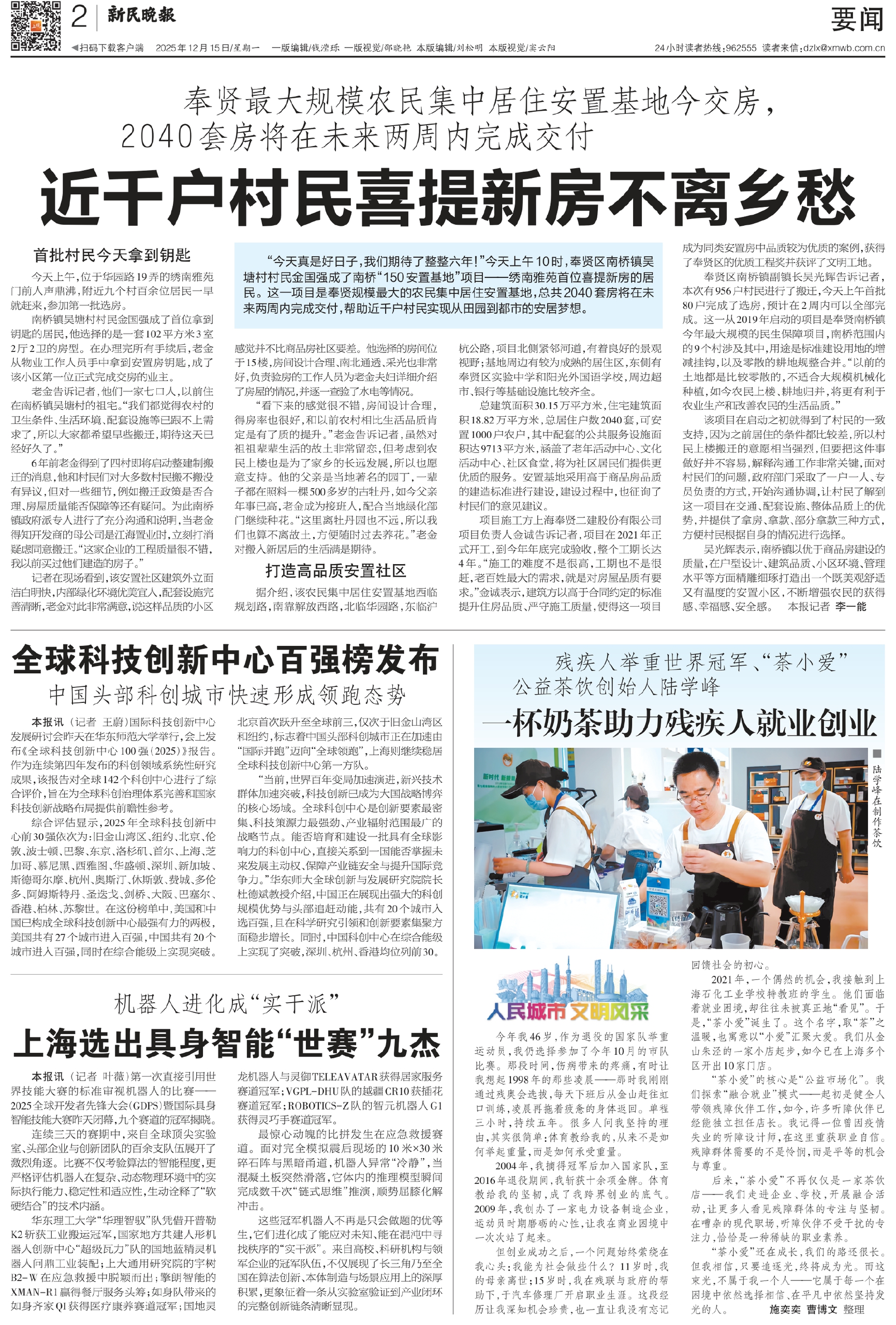 “今天真是好日子,我们期待了整整六年!”今天上午10时,奉贤区南桥镇吴塘村村民金国强成了南桥“150安置基地”项目——绣南雅苑首位喜提新房的居民。这一项目是奉贤规模最大的农民集中居住安置基地,总共2040套房将在未来两周内完成交付,帮助近千户村民实现从田园到都市的安居梦想。
