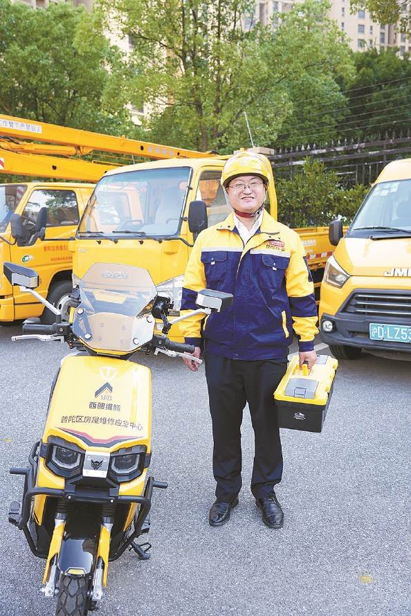 我至今记得第一次独自处理维修任务的情景。当时,居民家里马桶严重泛水,厕所内粪便污水横流,居民急切地表示“前前后后已有三拨人来,都没修好。”我手心冒汗,却毅然撸起袖子,拆卸马桶,清理污物,疏通管道。经过两小时的奋战,终于使马桶恢复正常使用。居民那激动的表情,让我第一次深刻体会到自身工作的价值。台风“利奇马”席卷上海时,一栋居民楼的6楼雨篷摇摇欲坠。我和同事上了顶楼,暴雨肆虐,天台湿滑。我顾不上这些,系牢安全绳,让同事死死拉住。我大半个身子探出去,一点一点敲掉铆钉,奋战十多分钟,终于安全拆下了雨篷。如此辛苦、惊险的经历,我已历经无数,而居民们温暖的笑容,正是我前行的动力。