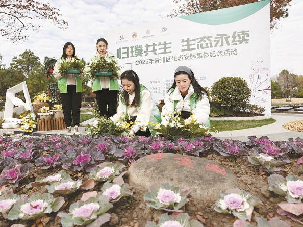 今天上午,“归璞共生 生态永续”——2025年青浦区生态安葬集体纪念活动,在上海福寿园希爱园启幕。秉持“生态优先、节约用地、人文关怀”的设计理念,诠释绿色、生态的殡葬理念,全新开辟的福寿园“希爱园生态葬墓区”占地约30平方米,采用可降解容器深埋方式,可实现土地循环使用。 本报记者 刘歆 摄影报道