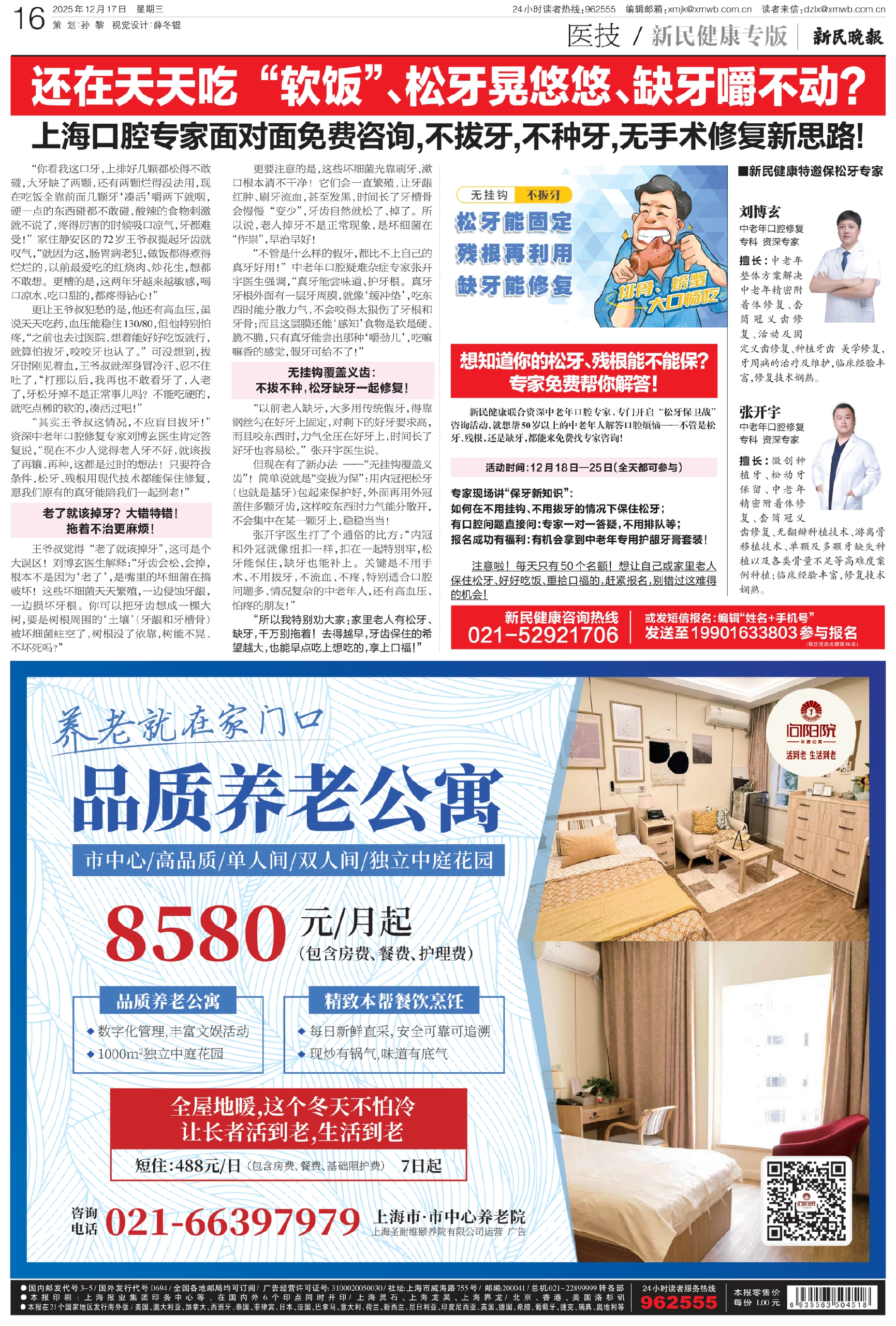 新民健康联合资深中老年口腔专家,专门开启“松牙保卫战”咨询活动,就想帮50岁以上的中老年人解答口腔烦恼——不管是松牙、残根,还是缺牙,都能来免费找专家咨询!