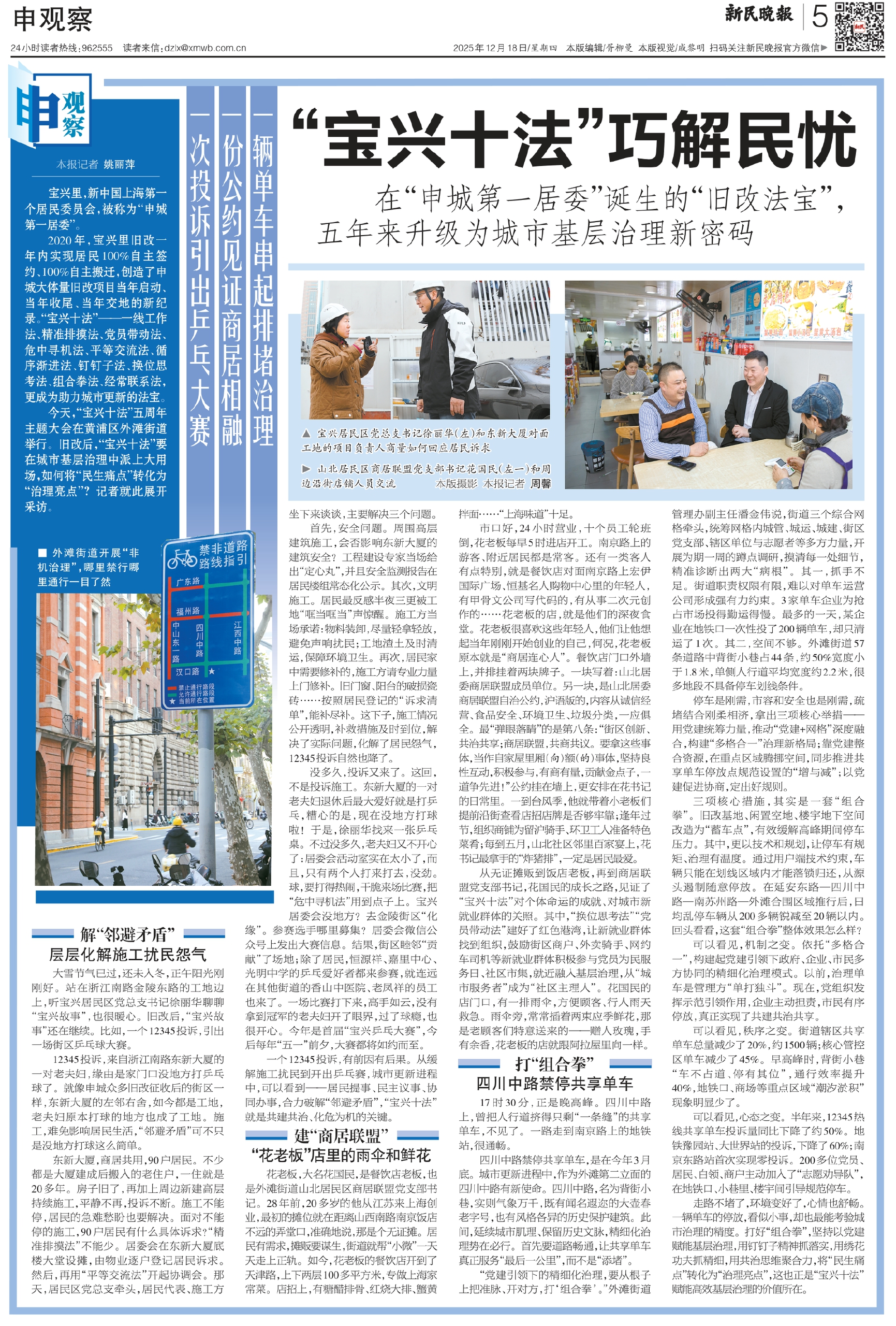 今天,“宝兴十法”五周年主题大会在黄浦区外滩街道举行。旧改后,“宝兴十法”要在城市基层治理中派上大用场,如何将“民生痛点”转化为“治理亮点”?记者就此展开采访。