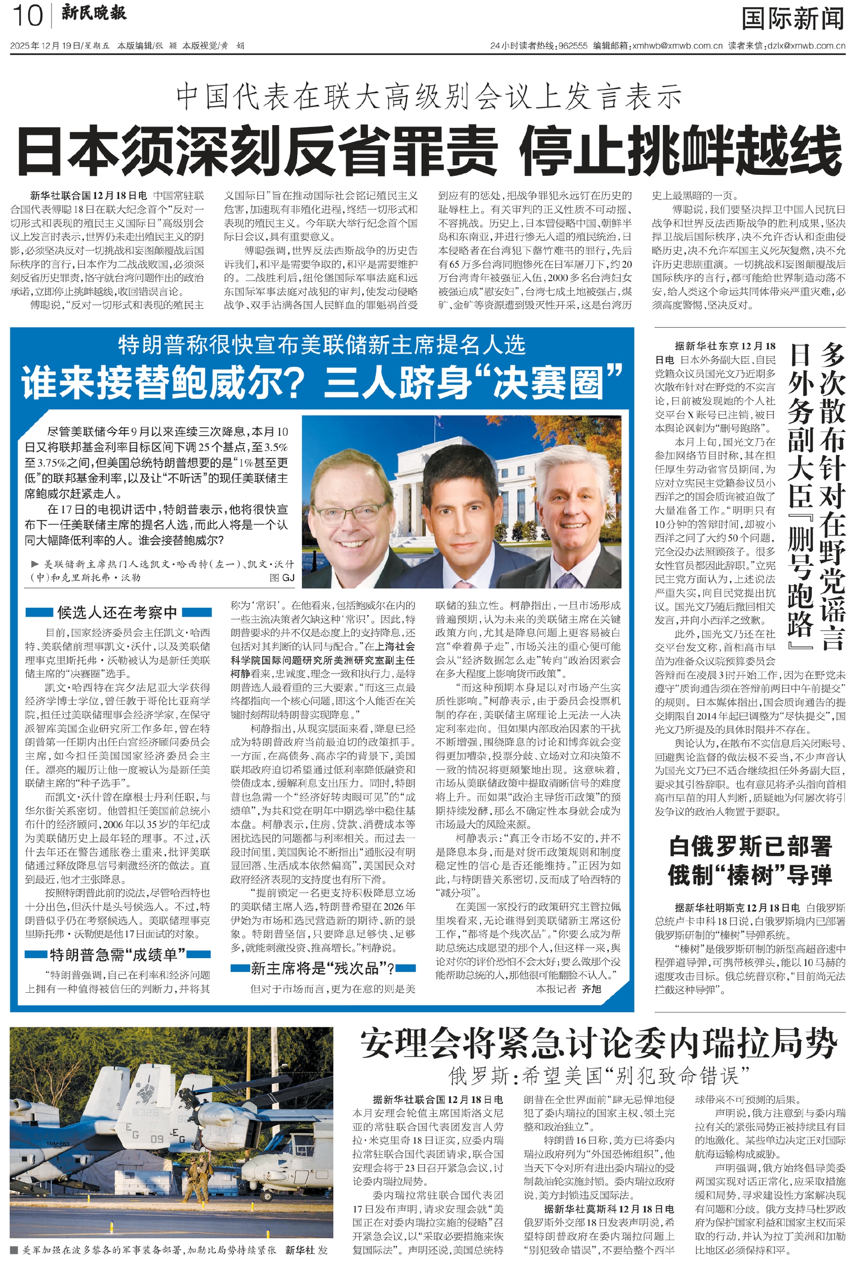 白俄罗斯已部署俄制“榛树”导弹 多次散布针对在野党谣言  日外务副大臣“删号跑路” 日本须深刻反省罪责  停止挑衅越线 安理会将紧急讨论委内瑞拉局势 谁来接替鲍威尔?三人跻身“决赛圈”