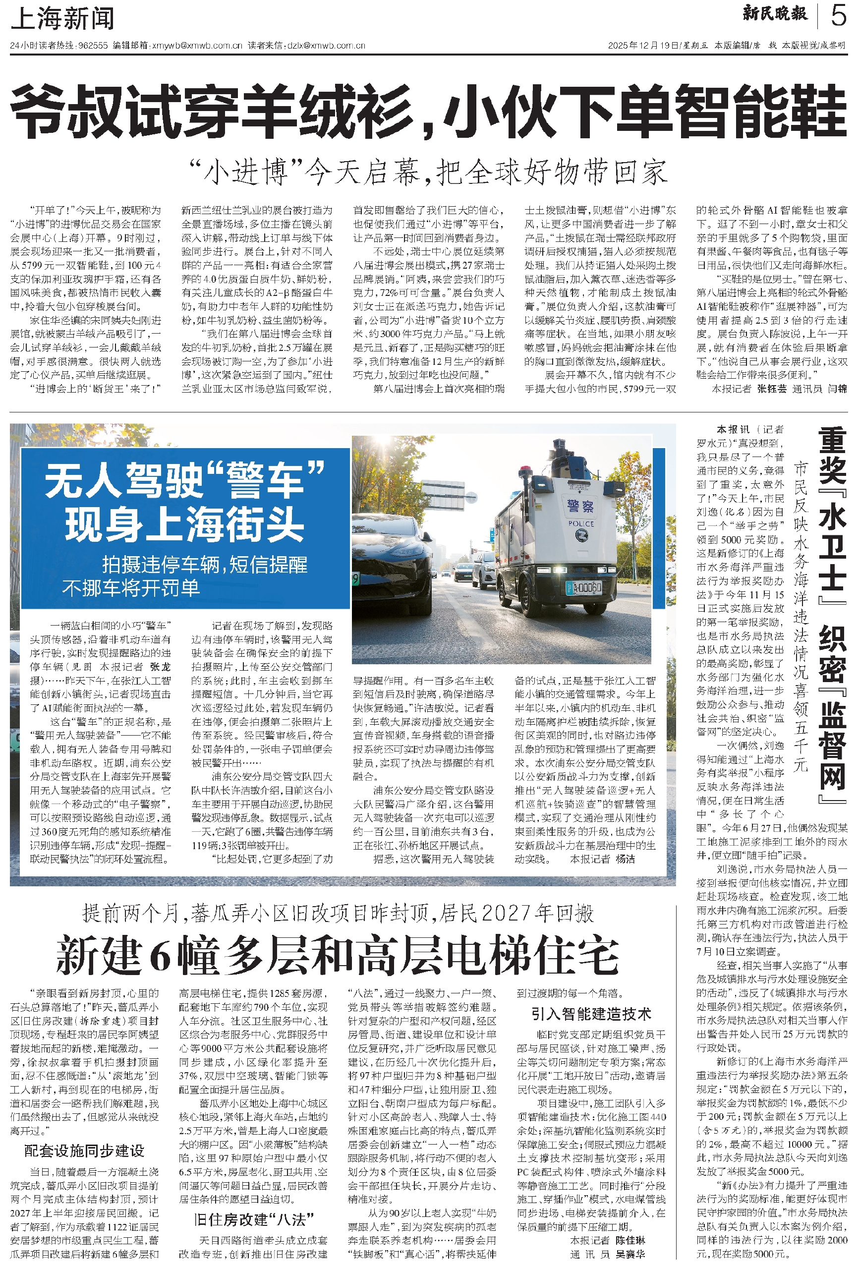 展会开幕不久,馆内就有不少手提大包小包的市民,5799元一双的轮式外骨骼AI智能鞋也被拿下。逛了不到一小时,章女士和父亲的手里就多了5个购物袋,里面有果酱、午餐肉等食品,也有毯子等日用品,很快他们又走向海鲜冰柜。