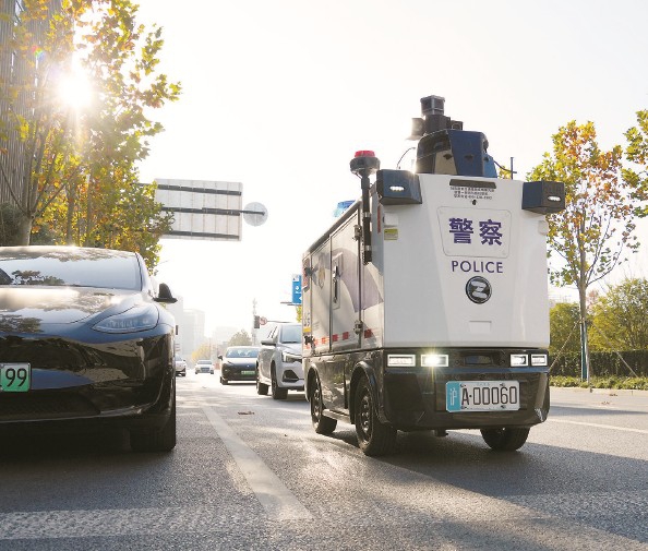 这台“警车”的正规名称,是“警用无人驾驶装备”——它不能载人,拥有无人装备专用号牌和非机动车路权。近期,浦东公安分局交管支队在上海率先开展警用无人驾驶装备的应用试点。它就像一个移动式的“电子警察”,可以按照预设路线自动巡逻,通过360度无死角的感知系统精准识别违停车辆,形成“发现-提醒-联动民警执法”的闭环处置流程。