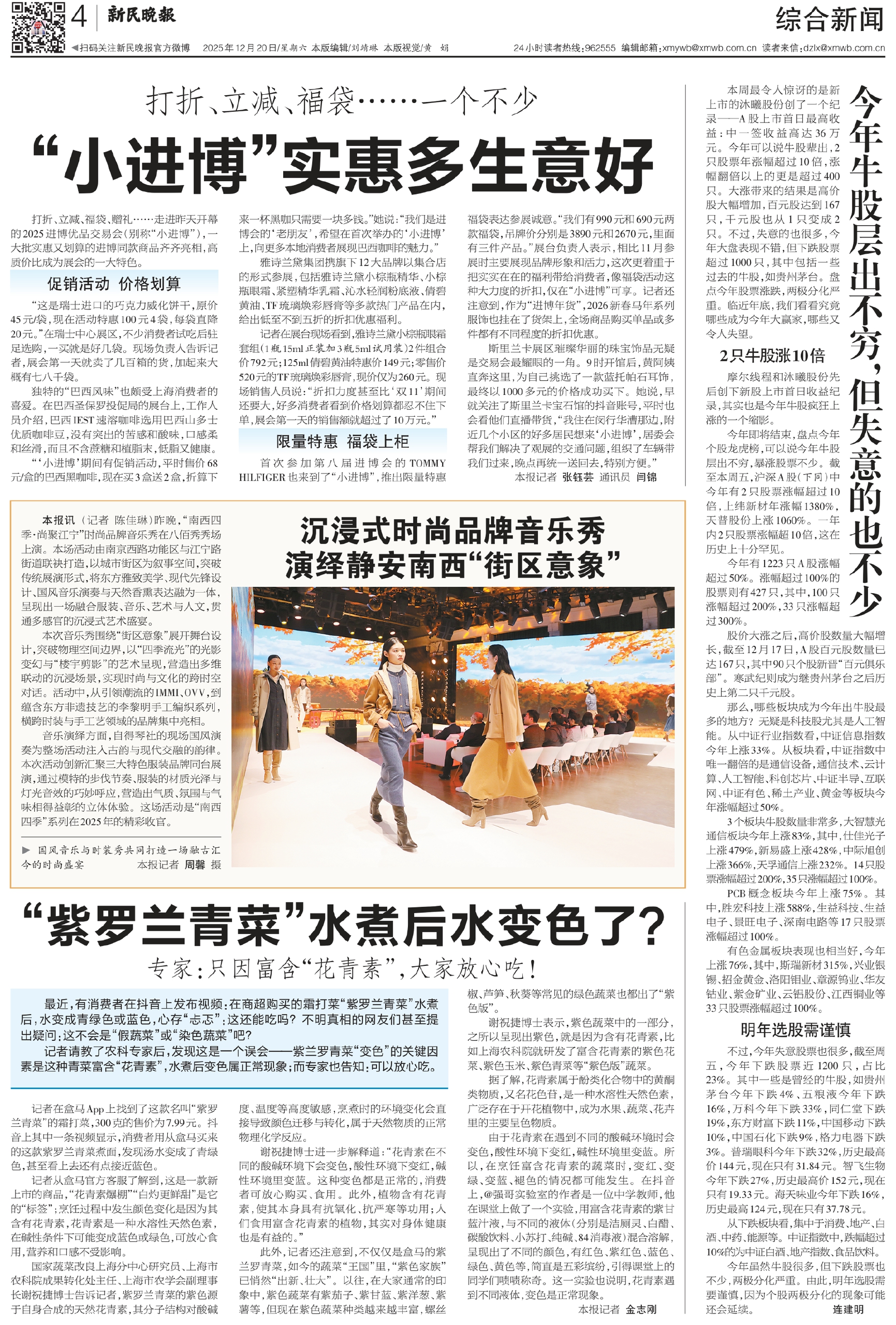 首次参加第八届进博会的TOMMY HILFIGER也来到了“小进博”,推出限量特惠福袋表达参展诚意。“我们有990元和690元两款福袋,吊牌价分别是3890元和2670元,里面有三件产品。”展台负责人表示,相比11月参展时主要展现品牌形象和活力,这次更着重于把实实在在的福利带给消费者,像福袋活动这种大力度的折扣,仅在“小进博”可享。记者还注意到,作为“进博年货”,2026新春马年系列服饰也挂在了货架上,全场商品购买单品或多件都有不同程度的折扣优惠。