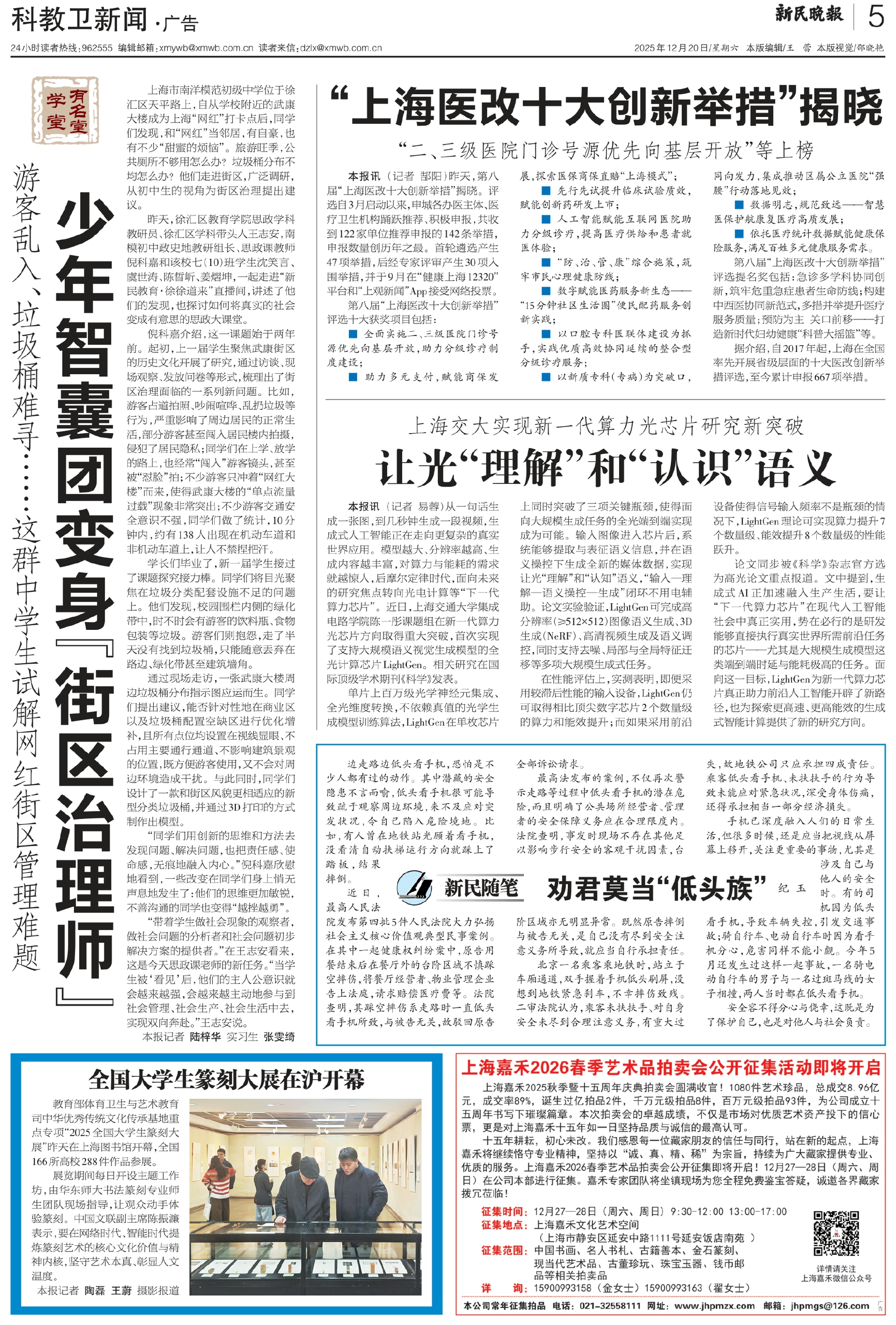 上海市南洋模范初级中学位于徐汇区天平路上,自从学校附近的武康大楼成为上海“网红”打卡点后,同学们发现,和“网红”当邻居,有自豪,也有不少“甜蜜的烦恼”。旅游旺季,公共厕所不够用怎么办?垃圾桶分布不均怎么办?他们走进街区,广泛调研,从初中生的视角为街区治理提出建议。