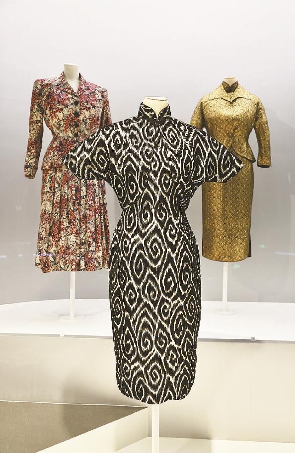 展览以“摩登浪潮”为经、“无界美学”为纬,通过场景化的叙事,展现海派旗袍自上世纪20年代至90年代的演进历程及其与全球时尚的同步互动。展览序厅以剧场般的圆弧设计,陈列6款不同廓形的旗袍,直观演绎了旗袍从上世纪20年代的宽松倒大袖到40年代修身曲线的重要设计变迁,张信哲收藏的椭圆几何纹提花缎旗袍、银灰色玫瑰纹勾金蕾丝旗袍等精品于此亮相。展览开篇则以上海城市为背景,通过月份牌、老电影、作家文字,重构海派生活场景,讲述旗袍如何从传统袍服演化而来,并迅速从沪上名媛的衣橱走向女性日常,成为现代都市生活的象征。
