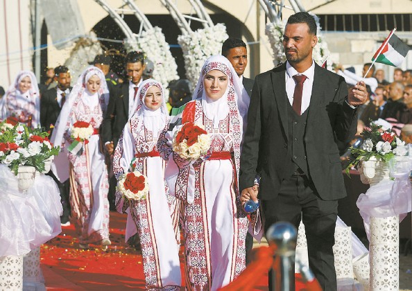 战火暂停生活重启,加沙废墟上举行集体婚礼 新华社 发