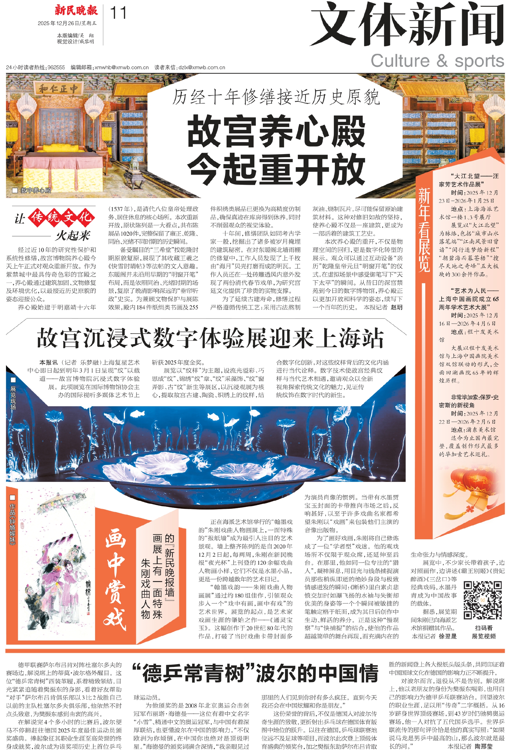 本次养心殿的重开,不仅是物理空间的回归,更是数字化转型的展示。观众可以通过互动设备“亲历”乾隆皇帝元旦“明窗开笔”的仪式,在虚拟场景中感受御笔写下“天下太平”的瞬间。从昔日的深宫禁苑到今日的数字博物馆,养心殿正以更加开放和科学的姿态,续写下一个百年的历史。 本报记者 赵玥
