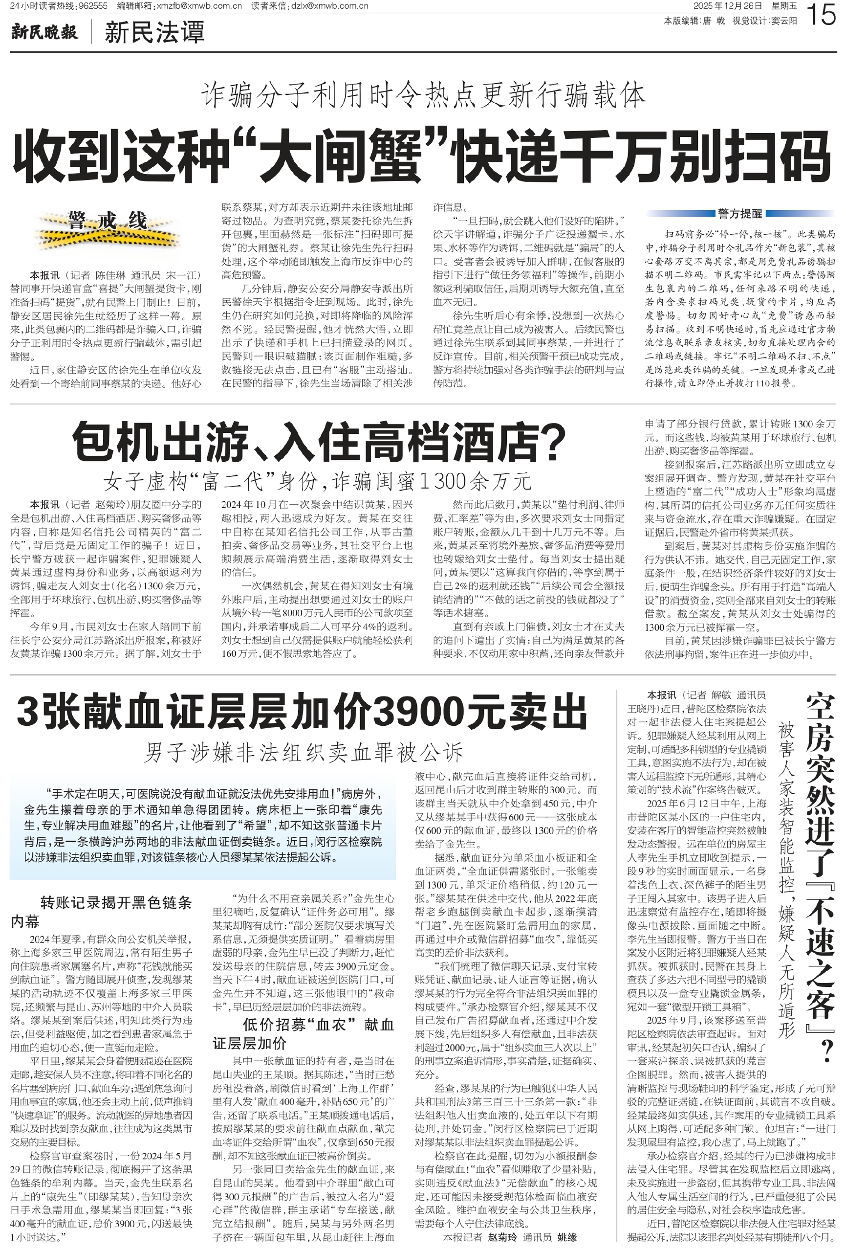 本报讯(记者 陈佳琳 通讯员 宋一江)替同事开快递盲盒“喜提”大闸蟹提货卡,刚准备扫码“提货”,就有民警上门制止!日前,静安区居民徐先生就经历了这样一幕。原来,此类包裹内的二维码都是诈骗入口,诈骗分子正利用时令热点更新行骗载体,需引起警惕。