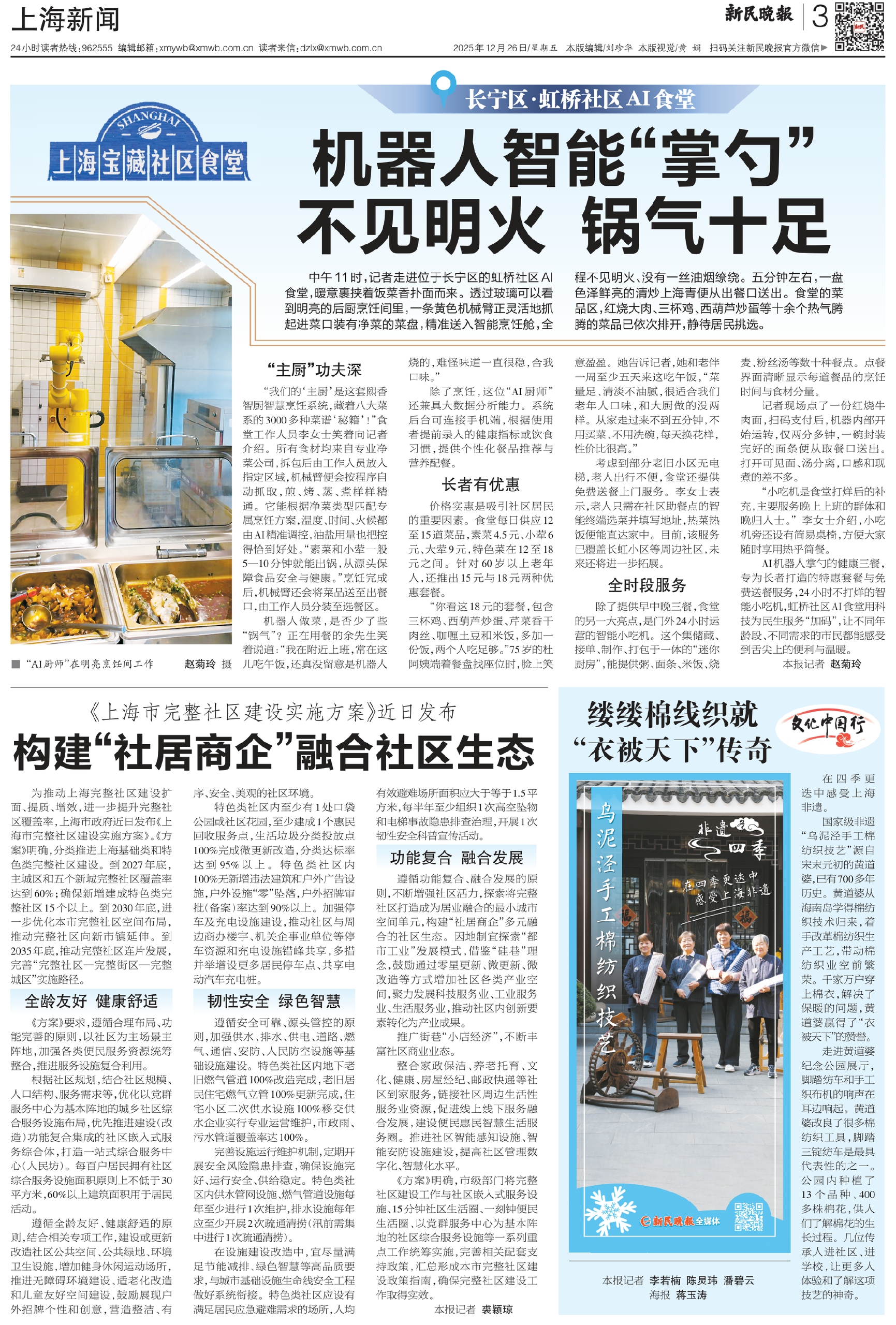 AI机器人掌勺的健康三餐,专为长者打造的特惠套餐与免费送餐服务,24小时不打烊的智能小吃机,虹桥社区AI食堂用科技为民生服务“加码”,让不同年龄段、不同需求的市民都能感受到舌尖上的便利与温暖。