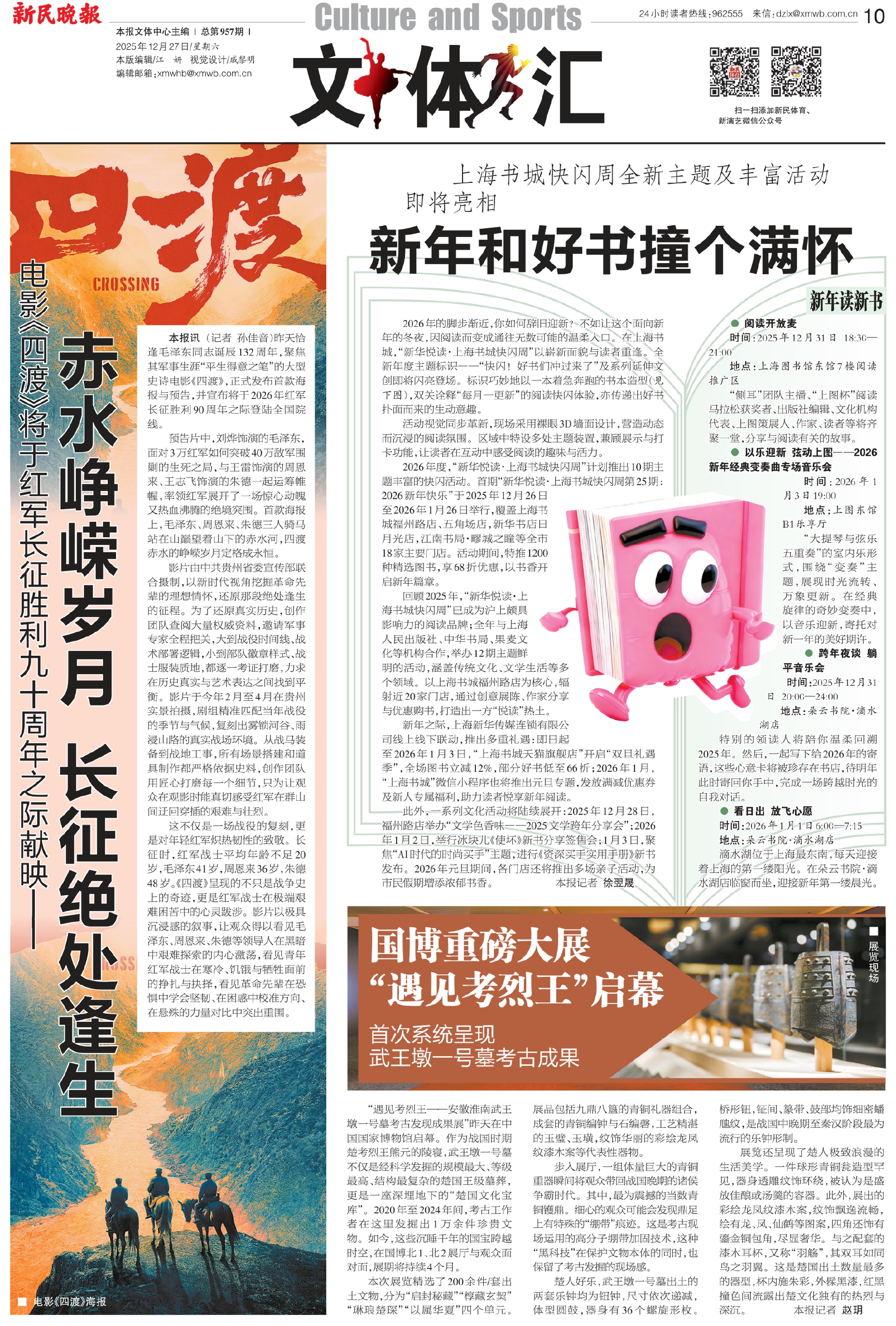本报讯(记者 孙佳音)昨天恰逢毛泽东同志诞辰132周年,聚焦其军事生涯“平生得意之笔”的大型史诗电影《四渡》,正式发布首款海报与预告,并宣布将于2026年红军长征胜利90周年之际登陆全国院线。