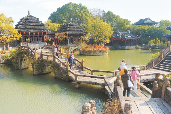 连日来,位于闵行区马桥镇的韩湘水博园实行限时免费开放,吸引不少市民游客前来游览,观赏古建筑与生态景观。 该园由古生态园区、古文化园以及乡村观光乐园组成,以“水文化”和“古文化”为脉络,因所处的地名“韩仓”相传是古代八仙之一的韩湘子留下的宅院而得名。 据悉,韩湘水博园免费开放时间为2025年12月22日至12月28日,以及2026年1月1日至1月3日。 杨建正 摄影报道