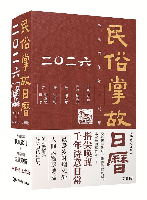 读者将在王安石的《元日》中感受春节新桃换旧符的生动场景;在辛弃疾《青玉案·元夕》中沉浸于元宵灯会的华美璀璨与人间欢腾;从文秀《端午》追溯端午习俗的深厚渊源;品味秦观《鹊桥仙》编织的七夕浪漫情笺……在这本日历书陪伴下,读者在感受诗词韵律意境之美的同时,可以深入理解民俗节日的文化内涵与情感寄托,传承、传播民俗文化。(上海辞书出版社)