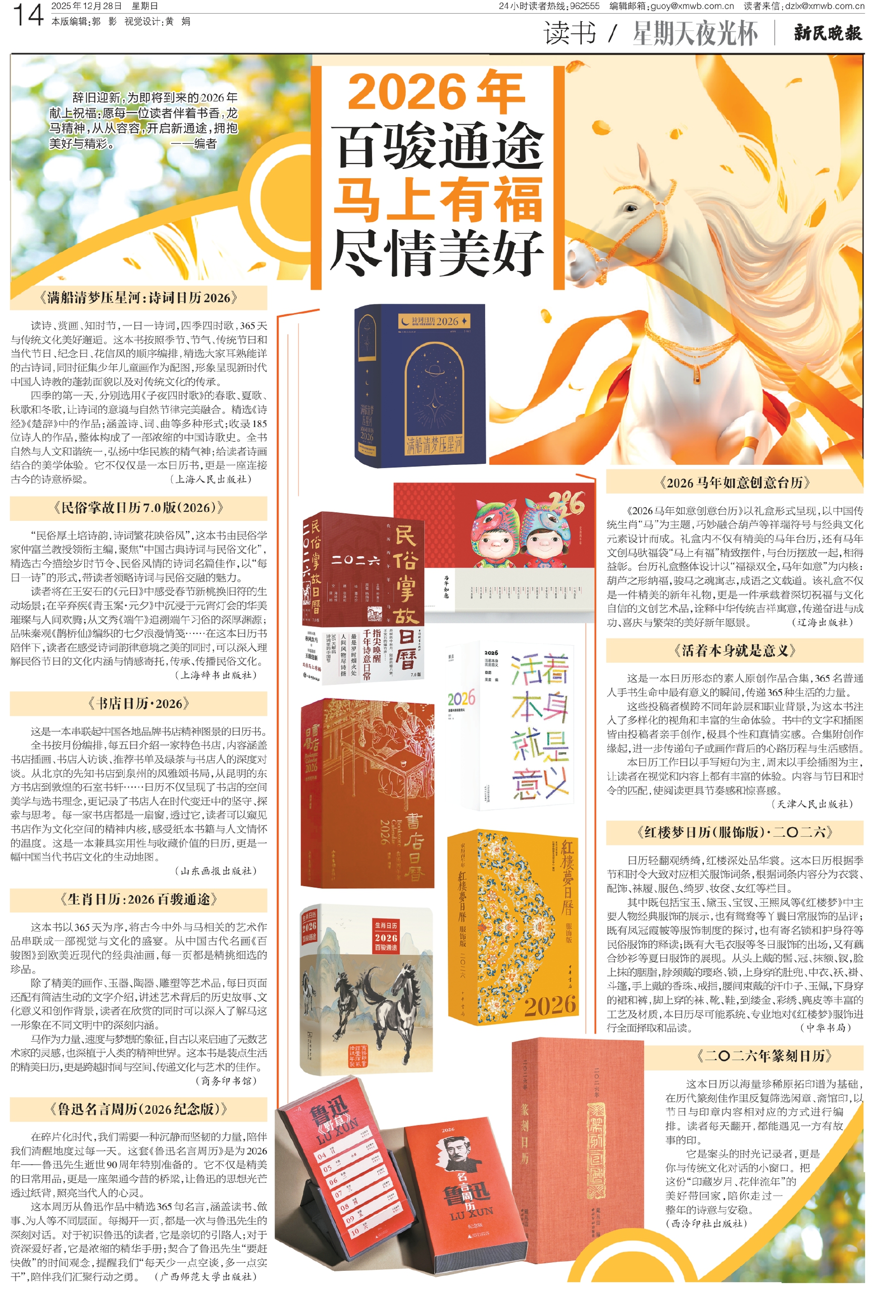 辞旧迎新,为即将到来的2026年献上祝福:愿每一位读者伴着书香,龙马精神,从从容容,开启新通途,拥抱美好与精彩。 ——编者