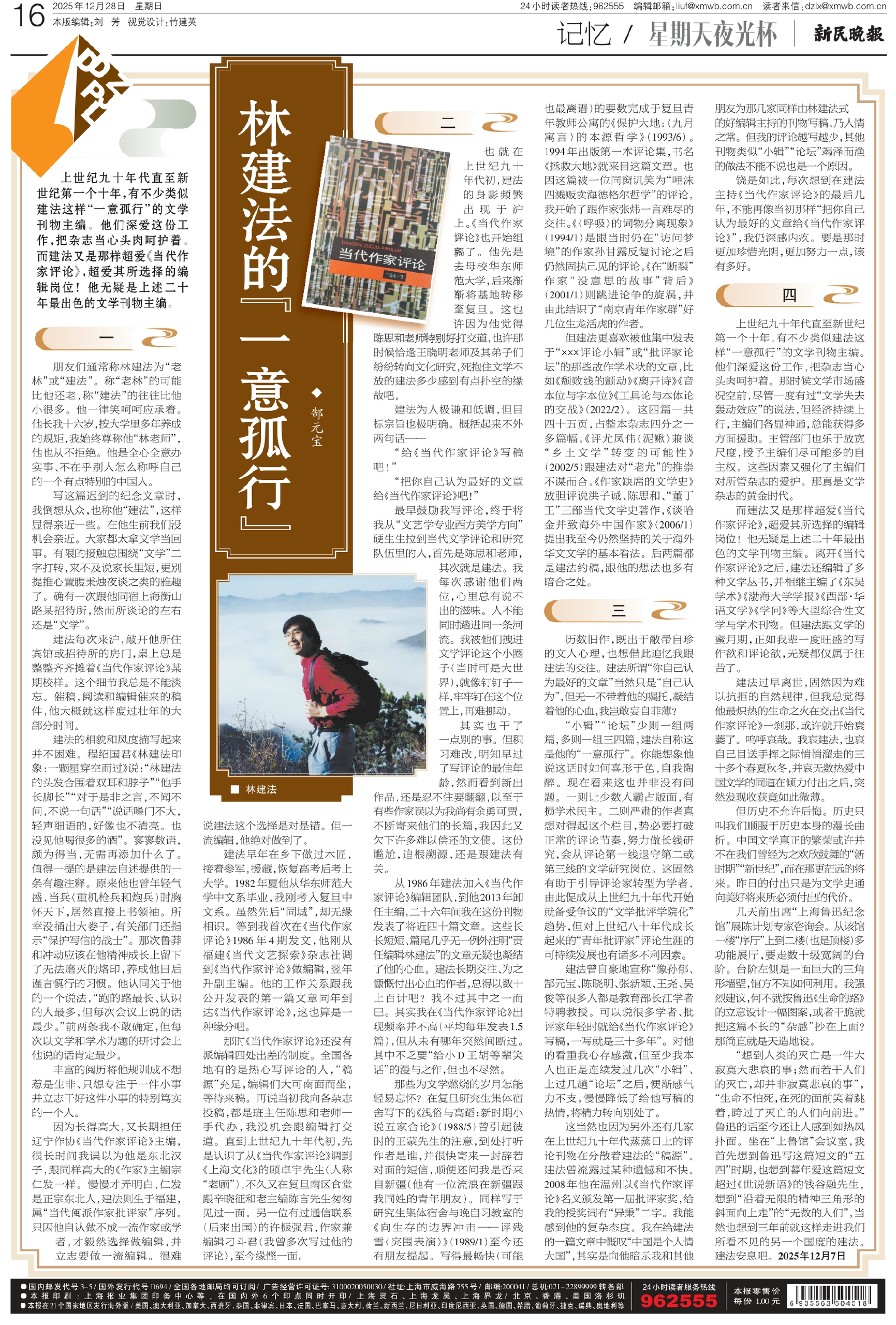 上世纪九十年代直至新世纪第一个十年,有不少类似建法这样“一意孤行”的文学刊物主编。他们深爱这份工作,把杂志当心头肉呵护着。而建法又是那样超爱《当代作家评论》,超爱其所选择的编辑岗位!他无疑是上述二十年最出色的文学刊物主编。