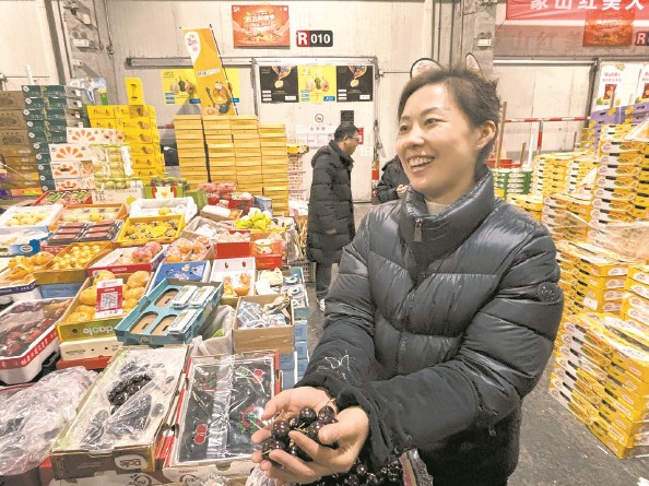 朱海莲的摊位主营进口高端水果,临近元旦,日均销量五千多箱 张钰芸 摄