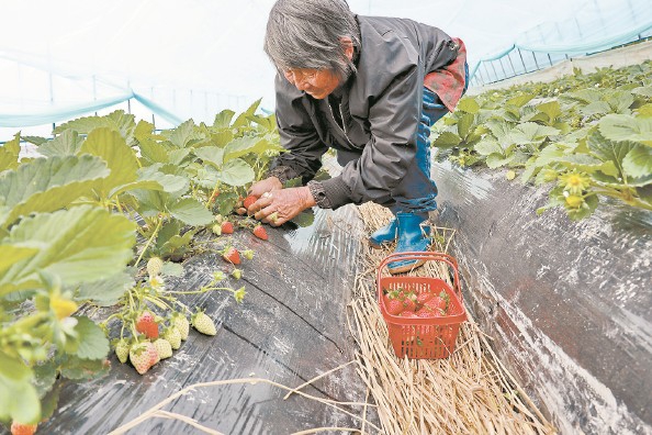 在金山区保勤果蔬种植专业合作社,棚内草莓已积累足够糖分,果农及时采摘,为消费者献上“冬日甜蜜”。 特约通讯员庄毅 摄影报道