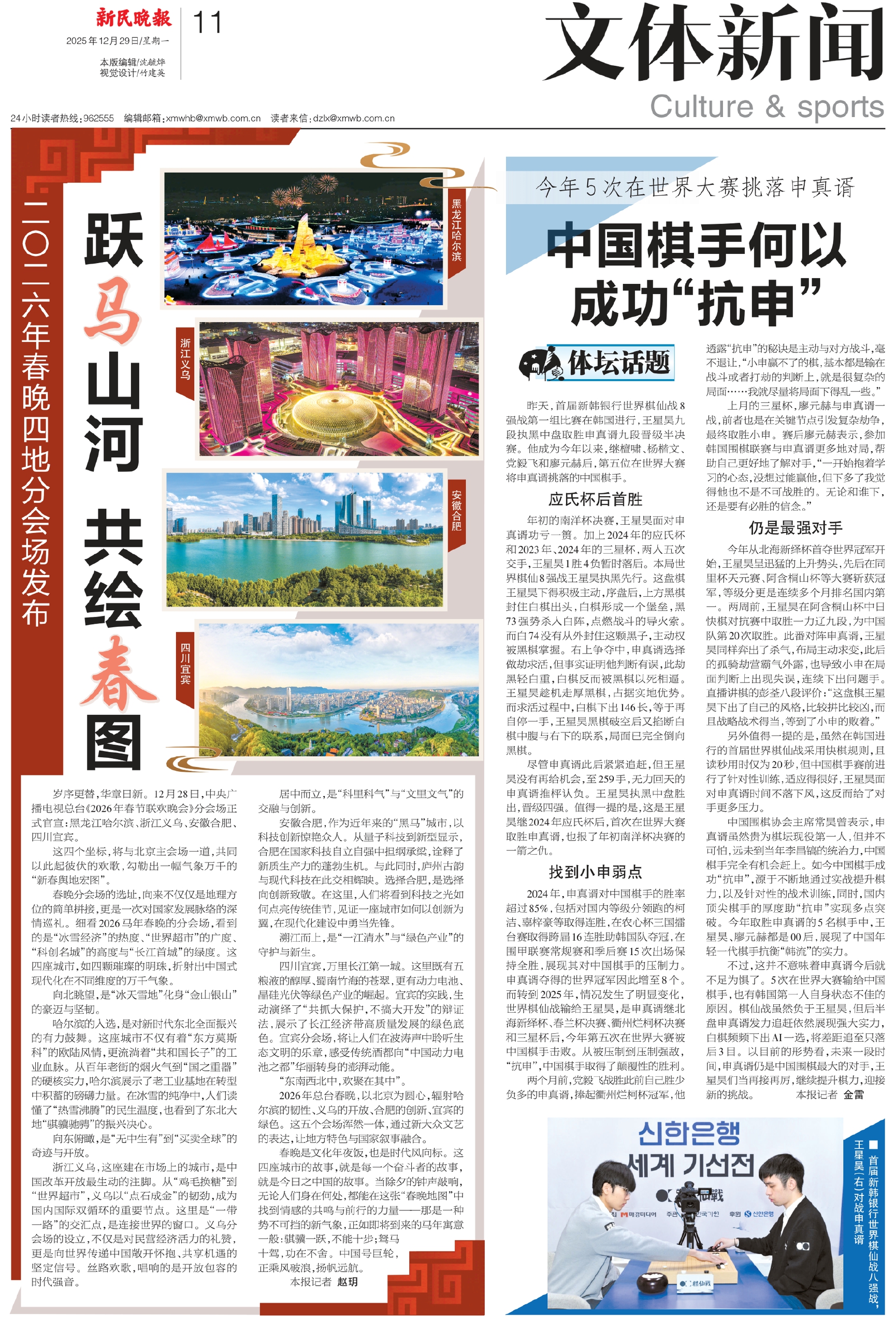 岁序更替,华章日新。12月28日,中央广播电视总台《2026年春节联欢晚会》分会场正式官宣:黑龙江哈尔滨、浙江义乌、安徽合肥、四川宜宾。