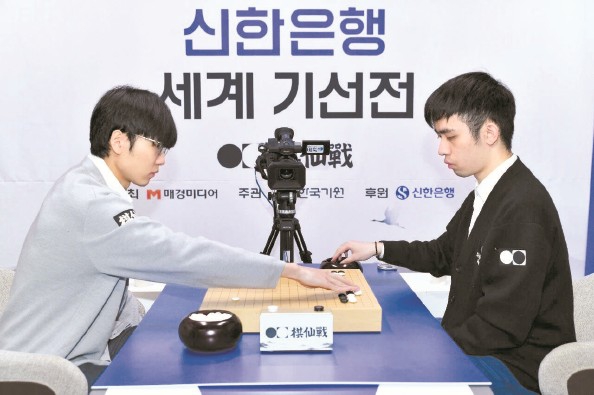 首届新韩银行世界棋仙战八强战,王星昊(右)对战申真谞
