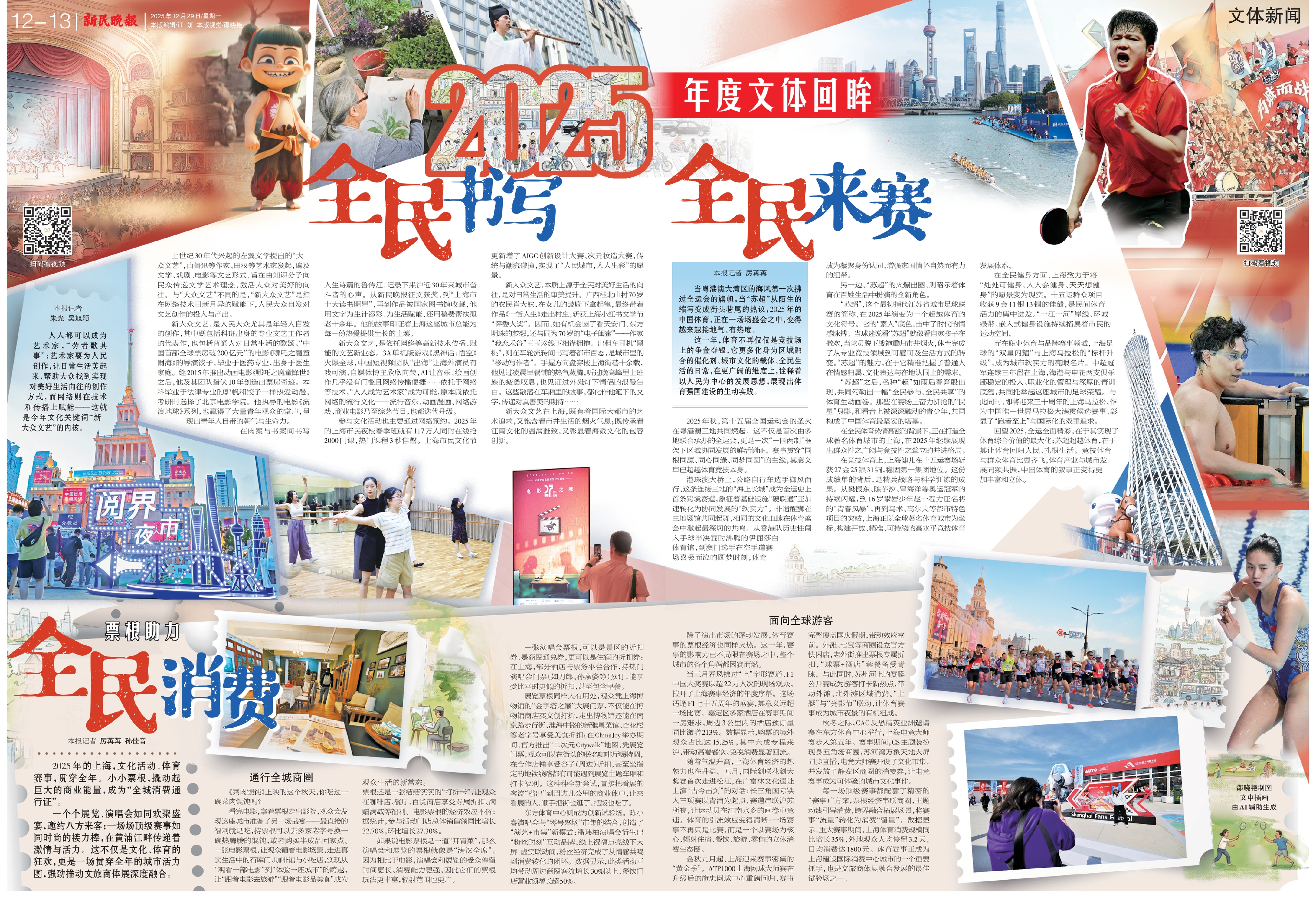 新大众文艺,是人民大众尤其是年轻人自发的创作,其中既包括科班出身的专业文艺工作者的代表作,也包括普通人对日常生活的歌颂。“中国首部全球票房破200亿元”的电影《哪吒之魔童闹海》的导演饺子,毕业于医药专业,出身于医生家庭。继2015年推出动画电影《哪吒之魔童降世》之后,他及其团队蛰伏10年创造出票房奇迹。本科毕业于法律专业的郭帆和饺子一样热爱动漫,考研时选择了北京电影学院。他执导的电影《流浪地球》系列,也赢得了大量青年观众的掌声,呈现出青年人自带的朝气与生命力。