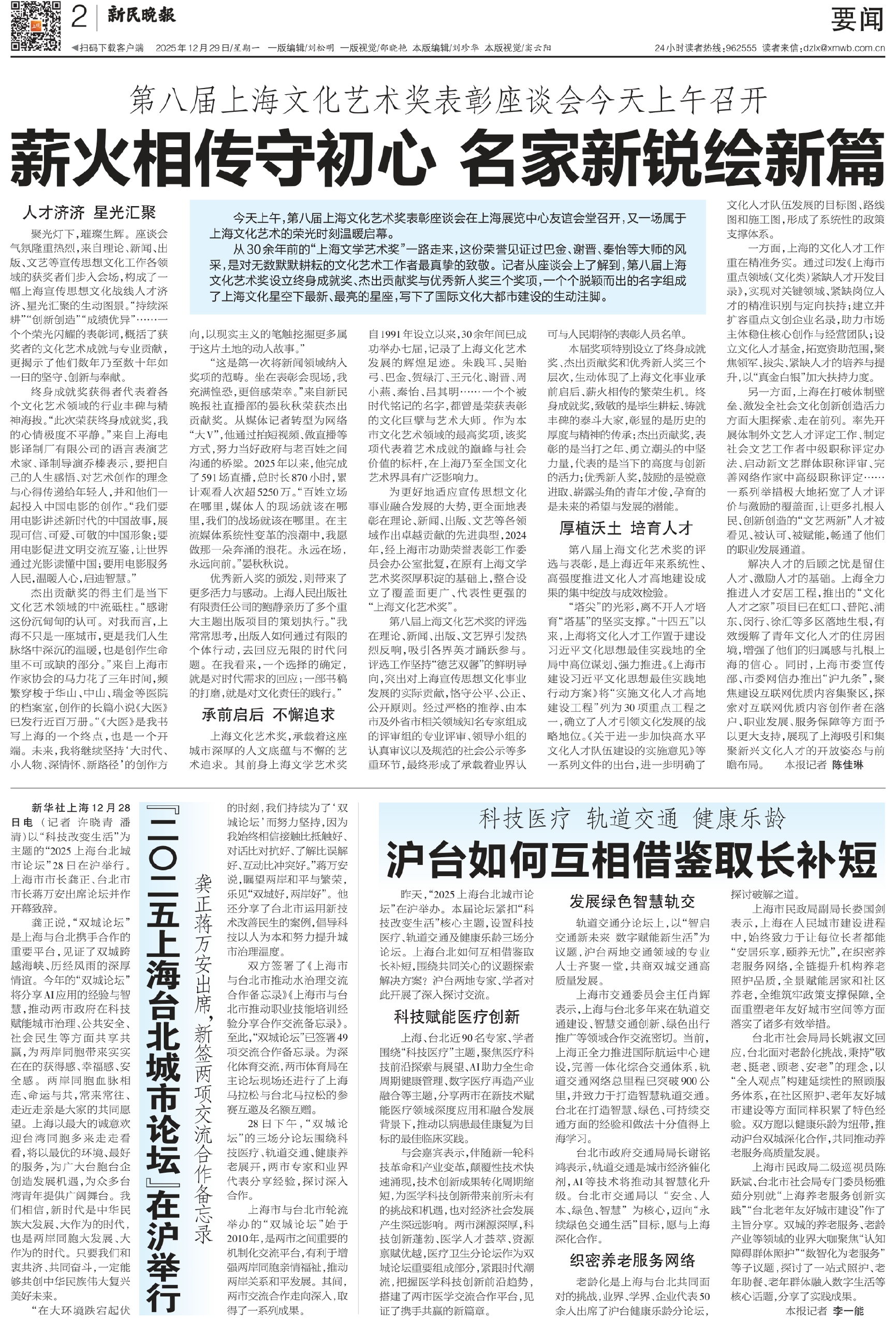 从30余年前的“上海文学艺术奖”一路走来,这份荣誉见证过巴金、谢晋、秦怡等大师的风采,是对无数默默耕耘的文化艺术工作者最真挚的致敬。记者从座谈会上了解到,第八届上海文化艺术奖设立终身成就奖、杰出贡献奖与优秀新人奖三个奖项,一个个脱颖而出的名字组成了上海文化星空下最新、最亮的星座,写下了国际文化大都市建设的生动注脚。