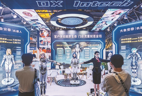 7月27日,2025世界人工智能大会展馆内的热度丝毫不亚于室外的高温。观众与机器人互动,欣赏机器人表演,体验AI对生活的重塑。本届人工智能大会有超过150台人形机器人同台竞技,创下历届之最,集中展示了从“动起来”到“用起来”的创新突破 本报记者 陶磊 摄