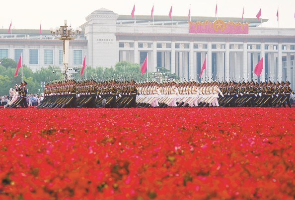 9月3日,纪念中国人民抗日战争暨世界反法西斯战争胜利80周年大会在北京天安门广场隆重举行。迎着晨光熹微,天安门广场国旗护卫队的官兵们迈着铿锵整齐的步伐准时抵达。他们身姿挺拔、精神抖擞,迅速投入到阵地布设工作中,为即将升起的五星红旗做好准备 本报记者 刘歆 摄