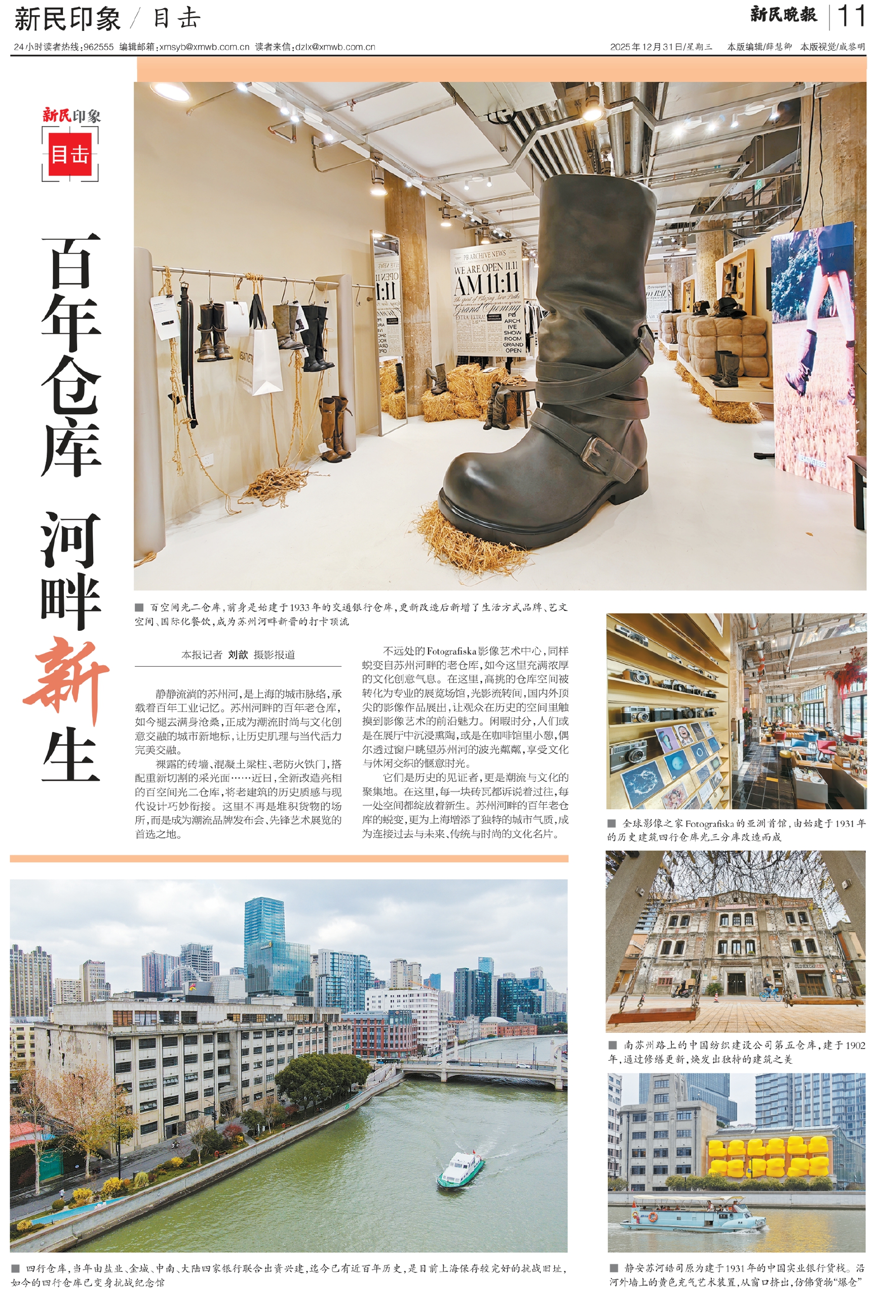 静静流淌的苏州河,是上海的城市脉络,承载着百年工业记忆。苏州河畔的百年老仓库,如今褪去满身沧桑,正成为潮流时尚与文化创意交融的城市新地标,让历史肌理与当代活力完美交融。