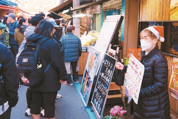日本生活成本持续上升,东京餐厅店员路旁招揽生意 新华社 发