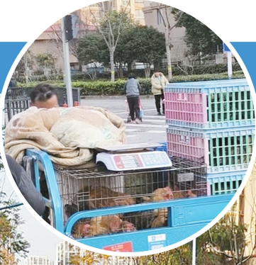 今年11月,居民惊讶地发现:原本“东躲西藏”的菜贩,竟集体转移至长庚路南行港桥一带,“光明正大”地摆起了摊,从清晨6点一直持续到中午11点。“早上七八点钟正是上班、送娃的高峰期,小区门口堵得水泄不通,汽车只能慢慢往前挪,好几次差点发生剐蹭。”更让居民们担忧的是,个别小贩竟在路边售卖活禽并当场宰杀,地上满是鸡血、羽毛,不仅严重影响市容环境,更存在病毒传播风险。