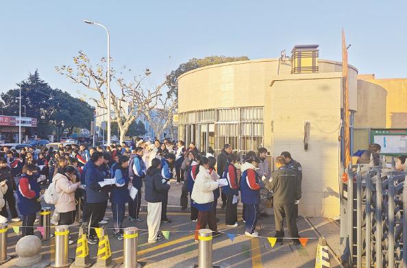 今天上午,不少学生在金山区上海师范大学第二附属中学考点候场 本报记者 陶磊 摄