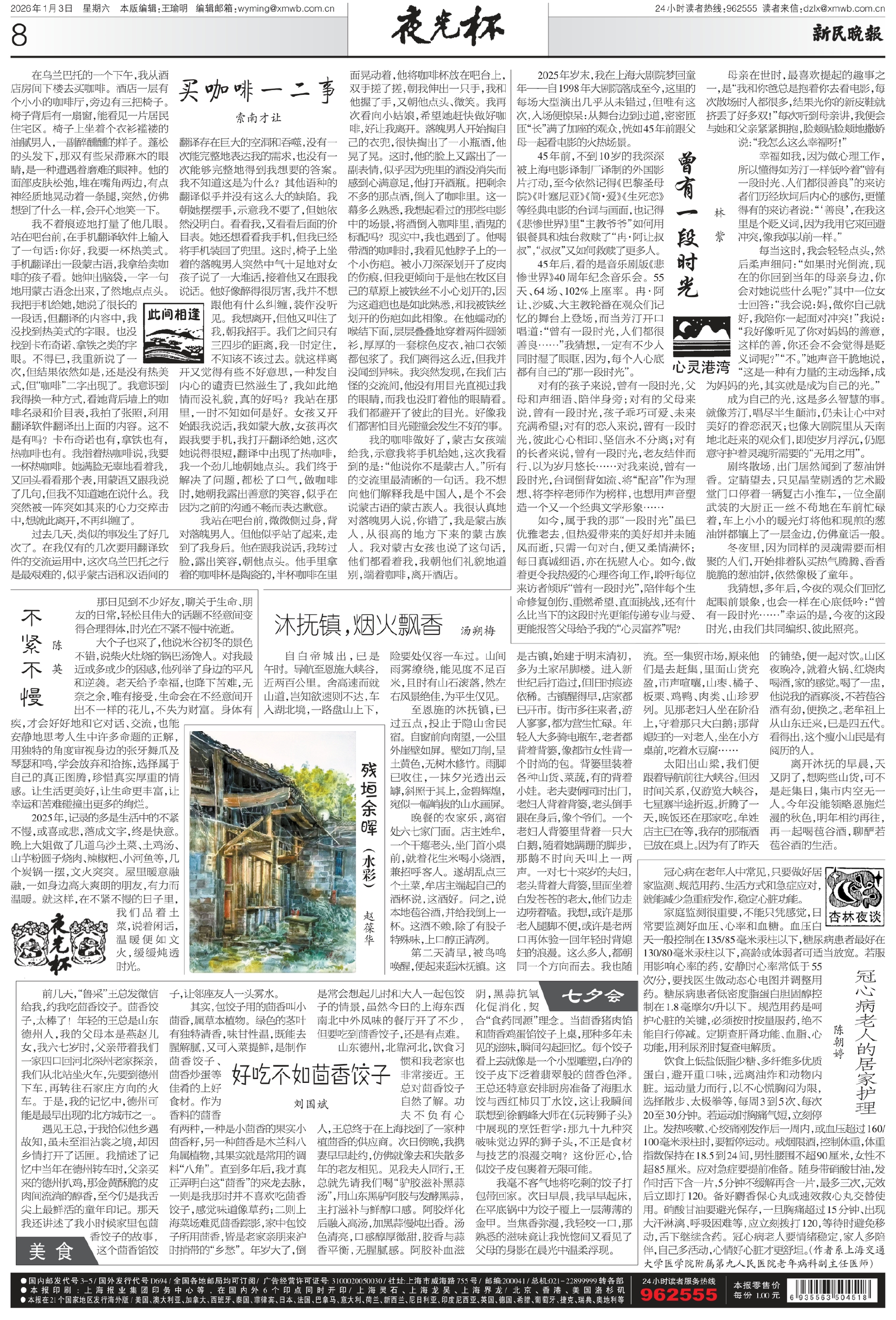 饮食上低盐低脂少糖、多纤维多优质蛋白,避开重口味,远离油炸和动物内脏。运动量力而行,以不心慌胸闷为限,选择散步、太极拳等,每周3到5次、每次20至30分钟。若运动时胸痛气短,立刻停止。发热咳嗽、心绞痛刚发作后一周内,或血压超过160/100毫米汞柱时,要暂停运动。戒烟限酒,控制体重,体重指数保持在18.5到24间,男性腰围不超90厘米,女性不超85厘米。应对急症要提前准备。随身带硝酸甘油,发作时舌下含一片,5分钟不缓解再含一片,最多三次,无效后立即打120。备好麝香保心丸或速效救心丸交替使用。硝酸甘油要避光保存,一旦胸痛超过15分钟、出现大汗淋漓、呼吸困难等,应立刻拨打120,等待时避免移动,舌下继续含药。冠心病老人要情绪稳定,家人多陪伴,自己多活动,心情好心脏才更舒坦。(作者系上海交通大学医学院附属第九人民医院老年病科副主任医师)
