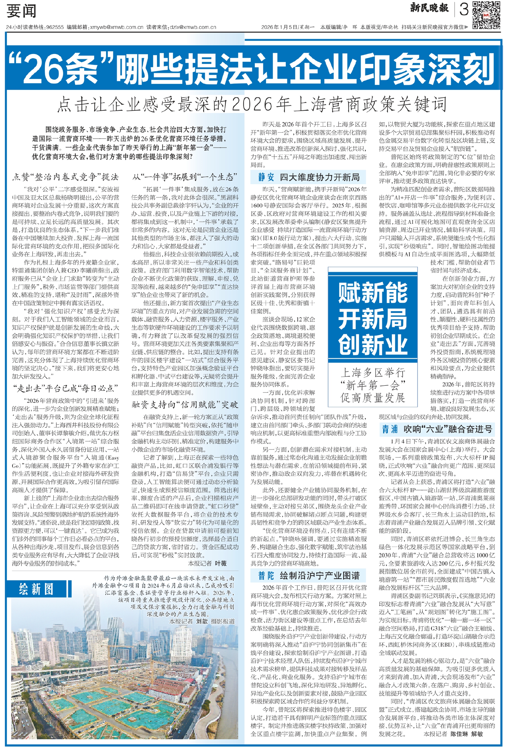 “2026年营商政策中的‘引进来’服务的深化,进一步为企业创新发展精准赋能;‘走出去’服务升级,则为企业全球化征程注入强劲动力。”上海西井科技股份有限公司创始人、董事长谭黎敏介绍,做优东方枢纽国际商务合作区“入境第一站”综合服务、深化外国人永久居留身份证应用、一站式入境游聚合服务平台“入境通(Easy Go)”功能拓展,既提升了外籍专家在沪工作生活便利度,也让企业对接海外研发资源、开展国际合作更高效,为吸引留存国际高端人才提供了保障。