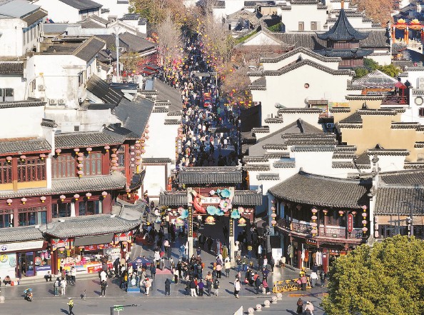 一月三日,游客在江苏南京夫子庙景区游览 新华社 图