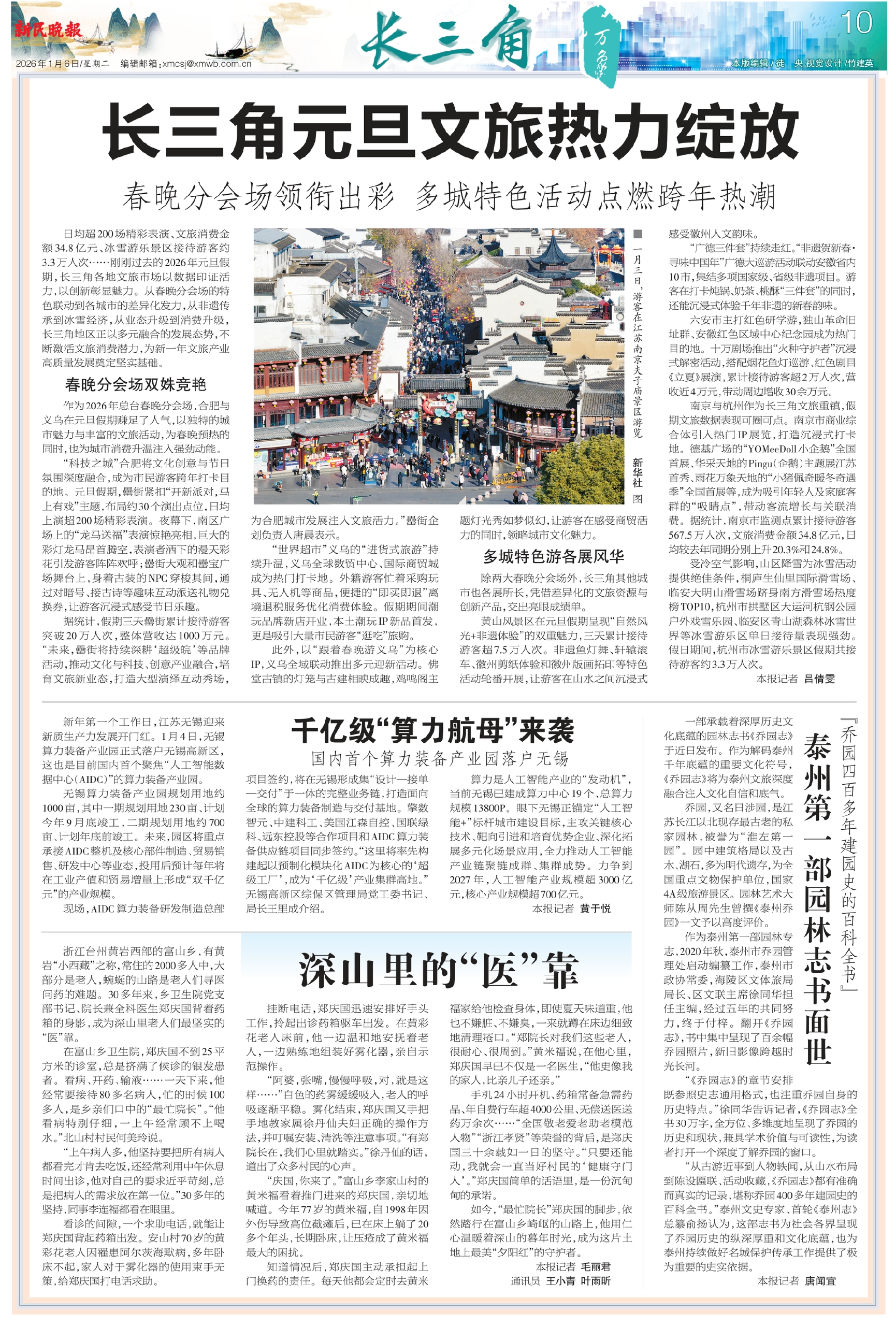 日均超200场精彩表演、文旅消费金额34.8亿元、冰雪游乐景区接待游客约3.3万人次……刚刚过去的2026年元旦假期,长三角各地文旅市场以数据印证活力,以创新彰显魅力。从春晚分会场的特色联动到各城市的差异化发力,从非遗传承到冰雪经济,从业态升级到消费升级,长三角地区正以多元融合的发展态势,不断激活文旅消费潜力,为新一年文旅产业高质量发展奠定坚实基础。