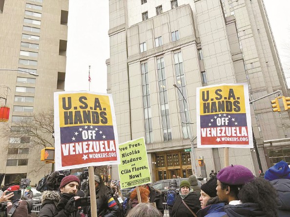 人们在马杜罗出庭的纽约南区联邦地区法院外示威抗议 新华社 发
