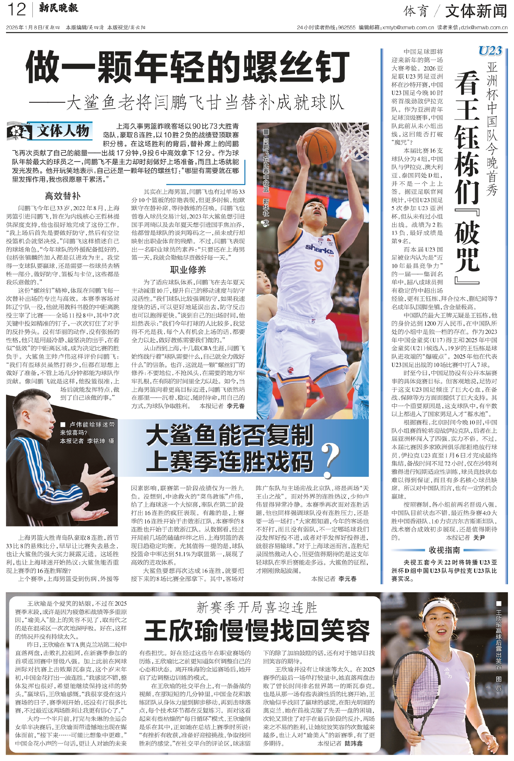 大鲨鱼要想再次达成16连胜,就要把接下来的8场比赛全部拿下。其中,客场对阵广东队与主场迎战北京队,将是两场“天王山之战”。面对外界的连胜热议,少帅卢伟显得异常冷静。本赛季再次面对连胜话题,他也同样强调球队没有连胜压力,还是要一场一场打:“大家都知道,今年的客场也不好打,而且没有弱队,不一定哪场球我们没发挥好投不进,或者对手发挥好投得进,就很容易输球。”对于上海球迷而言,连胜纪录固然激动人心,但更值得期待的是这支年轻球队在季后赛能走多远。大鲨鱼的征程,才刚刚掀起波澜。