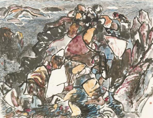 烁石(设色水墨)