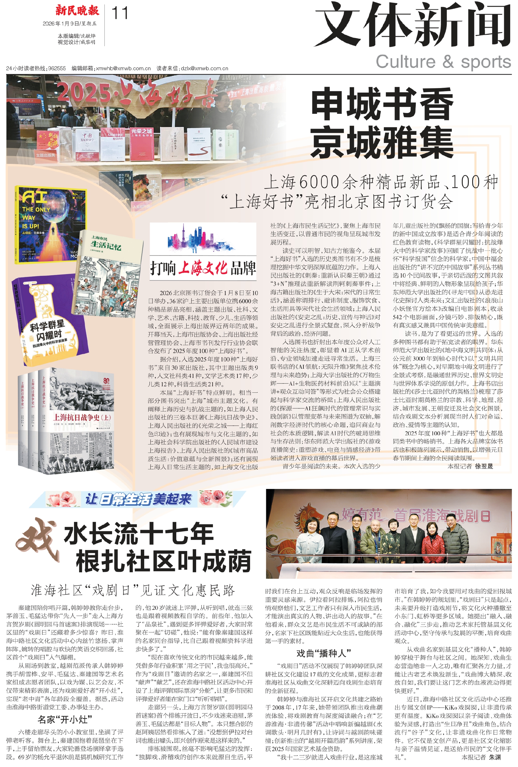 2026北京图书订货会于1月8日至10日举办,36家沪上主要出版单位携6000余种精品新品亮相,涵盖主题出版、社科、文学、艺术、古籍、科技、教育、少儿、生活等领域,全面展示上海出版界近两年的成果。开幕当天,上海市出版协会、上海出版社经营管理协会、上海市书刊发行行业协会联合发布了2025年度100种“上海好书”。