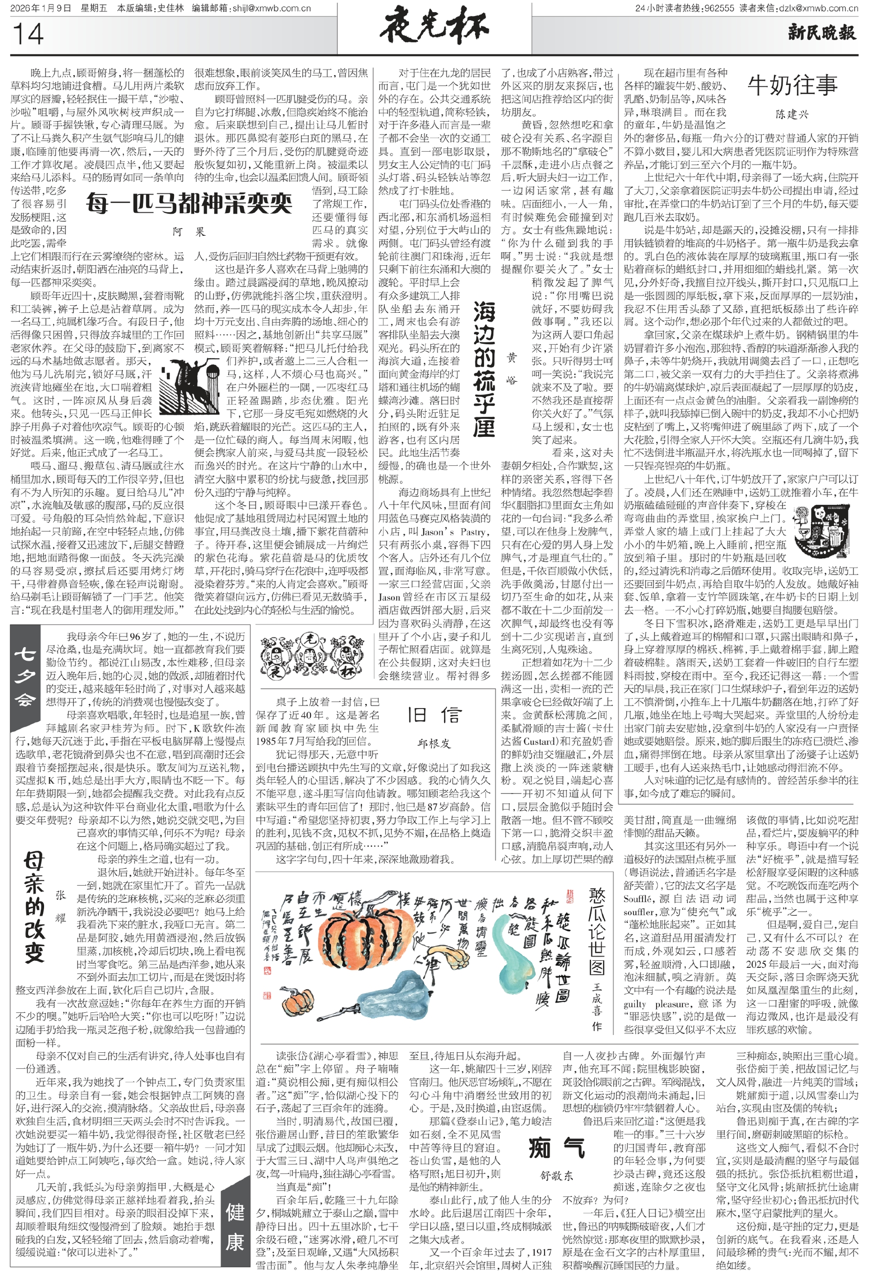 顾哥年近四十,皮肤黝黑,套着雨靴和工装裤,裤子上总是沾着草屑。成为一名马工,纯属机缘巧合。有段日子,他活得像只困兽,只得放弃城里的工作回老家休养。在父母的鼓励下,到离家不远的马术基地做志愿者。那天,他为马儿洗刷完,锁好马厩,汗流浃背地瘫坐在地,大口喘着粗气。这时,一阵凉风从身后袭来。他转头,只见一匹马正伸长脖子用鼻子对着他吹凉气。顾哥的心顿时被温柔填满。这一晚,他难得睡了个好觉。后来,他正式成了一名马工。